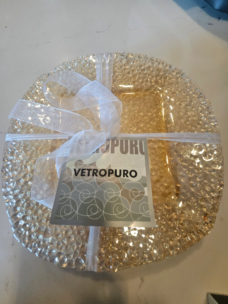 Vetropuro Set 4 Glass Plates Square Amber Bubble Texture made in Turkey Selling a brand new Vetro Puro glass plate! It's still in its original packaging and has never been used. Perfect for adding a touch of elegance to your table setting