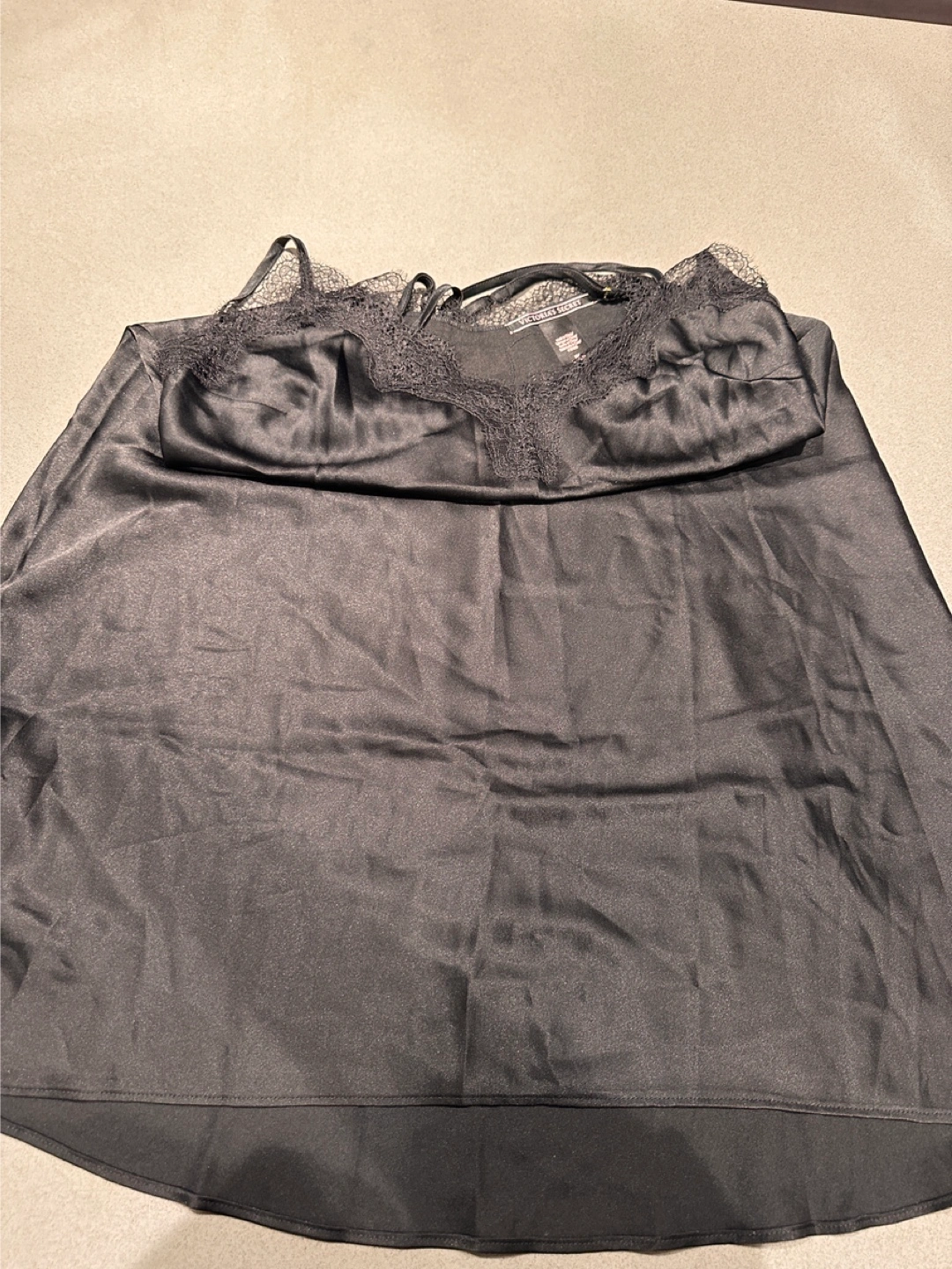 Selling a Victoria's Secret cami in black. It's a size M and features delicate lace detailing. Perfect for sleepwear or layering!