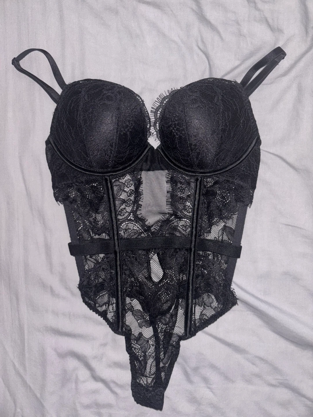 Victoria's Secret corset in size XS. It's a beautiful black lace design. Never used/worn, pick up and cash only :)
