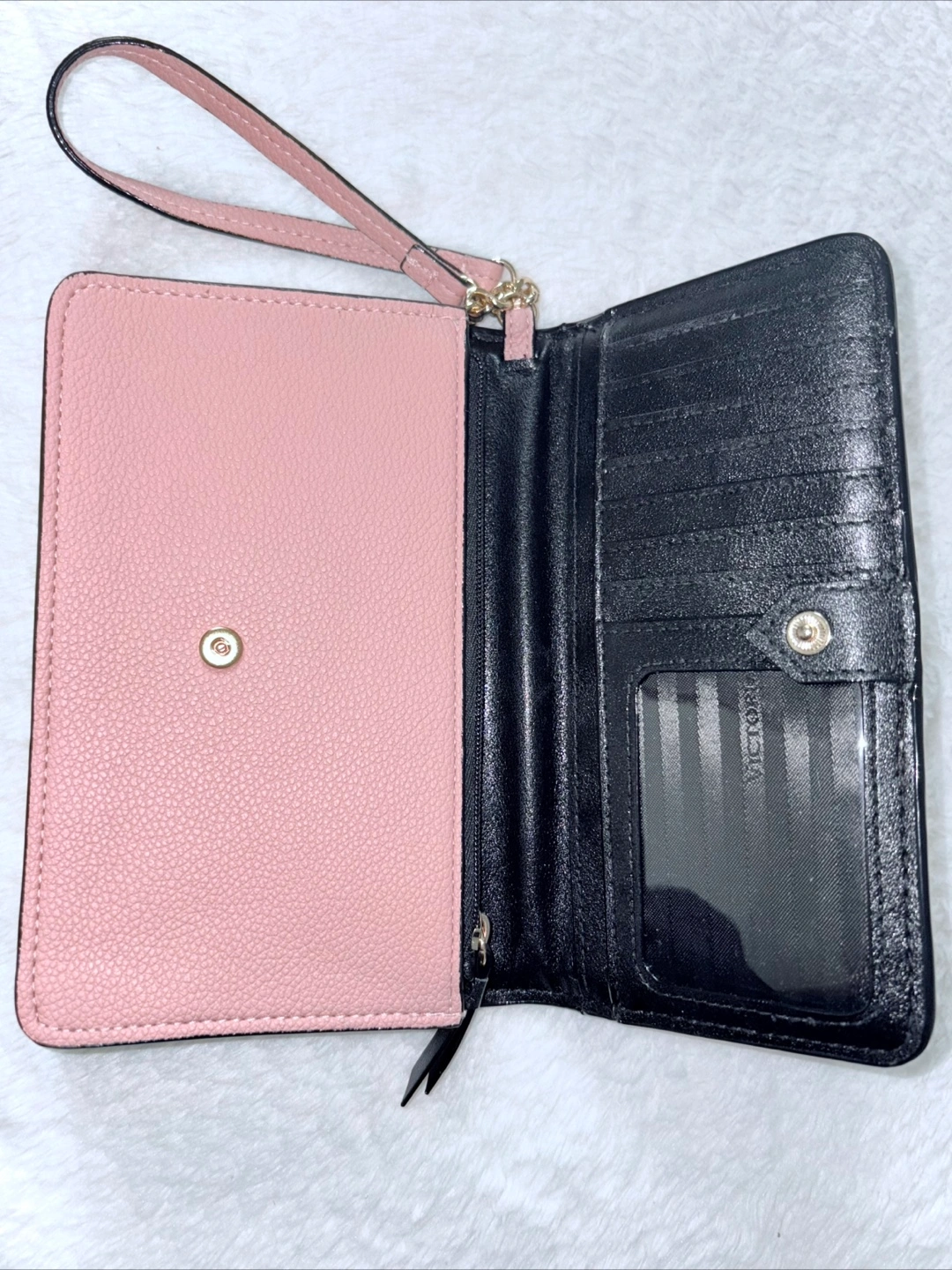 A wallet and a clutch in one, this chic style keeps everything organized and your look effortless. 🩷7.28" x 1.18" x 4.33" 🩷Removable wristlet strap 🩷1 phone pocket 🩷1 interior zip pocket 🩷2 slip pockets 🩷7 card slots