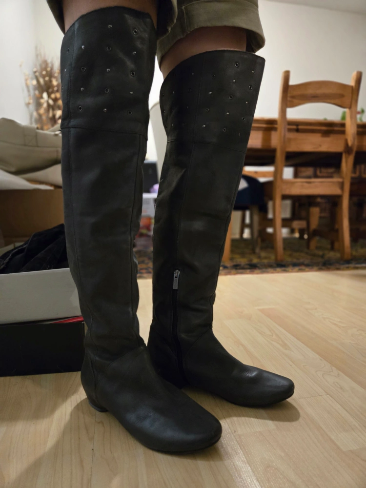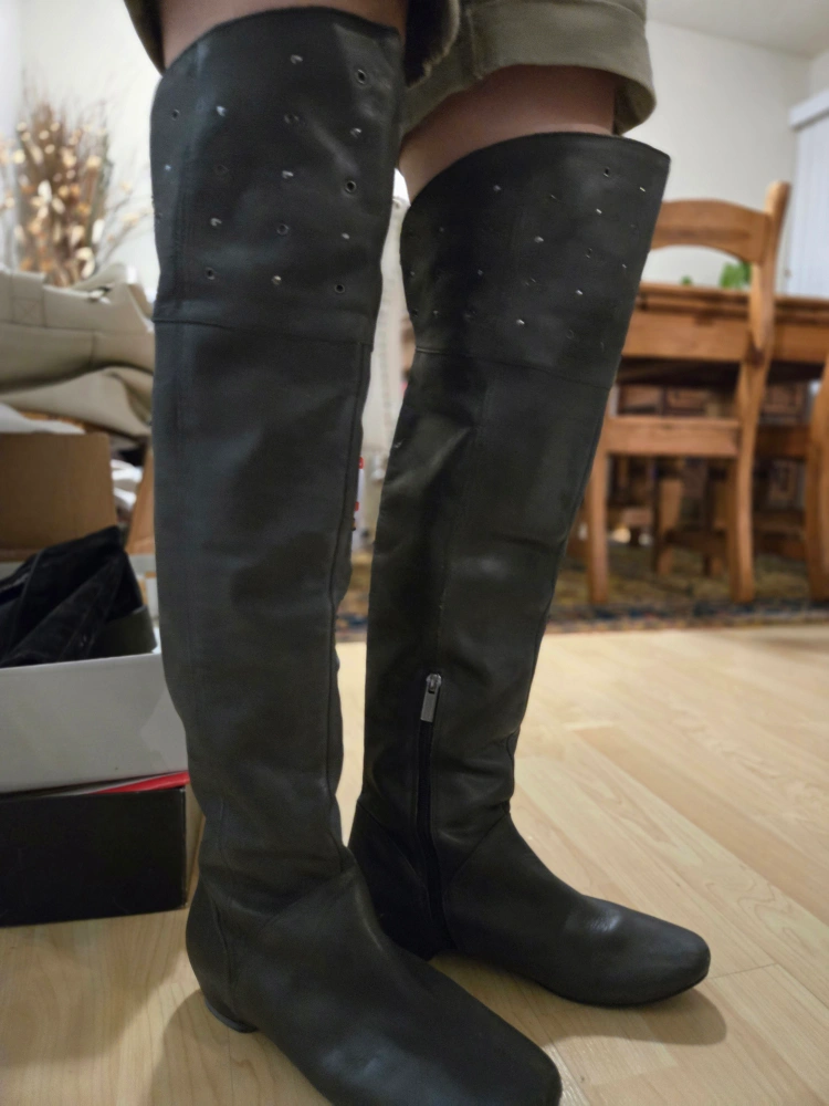 Selling a pair of Vince Camuto over-the-knee boots in black leather. They're a size 7 and in great condition. These stylish boots are perfect for adding a touch of elegance to any outfit! Reason of Selling: I am moving to new place. Only available for pick up.