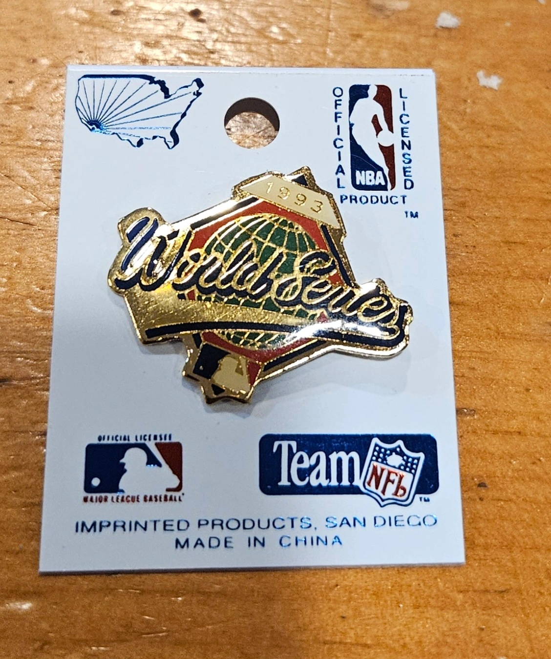 Selling a 1993 World Series MLB pin. It's an official licensed product. Imprinted products, San Diego. 1993 World Series champs! brand new.