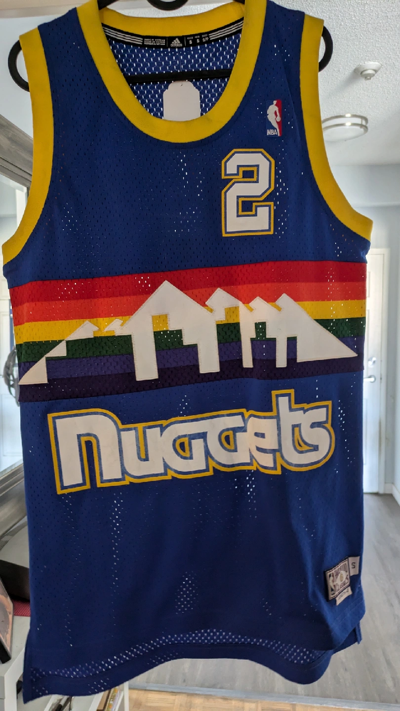 Selling an Vintage Adidas Alex English Denver Nuggets jersey, number 2. It is a size small and in great condition! The jersey features the classic Nuggets rainbow design and is perfect for any basketball fan