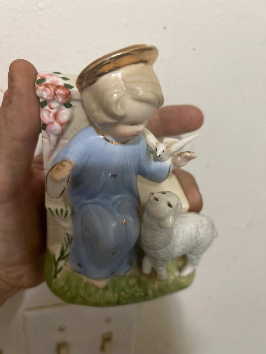 Selling a sweet vintage ARCO Japan figurine! It features an angel with a lamb and a dove. Perfect for adding a touch of vintage charm to your home