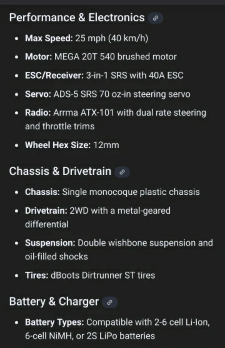 Selling a Vintage Arrma Voltage Fazon RC Car in excellent used condition. 1:10 scale. Basically been a shelf queen. Well maintained and still running great. ( Body isn't the original fazon body ) Great RC to have for a collection or for beginner rc car owners with its adjustable speed control on remote. Full specs listed in pictures. Batteries for remote controller & Rc car itself are not included. https://youtu.be/S6P_y0t0C0g?si=rw0q_o4tJAAWysjZ Pickup only. Public meet up located at 2054 Davenport rd. in Station parking lot.