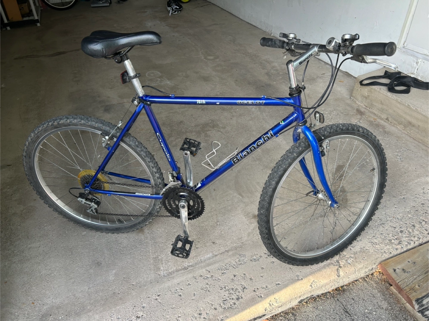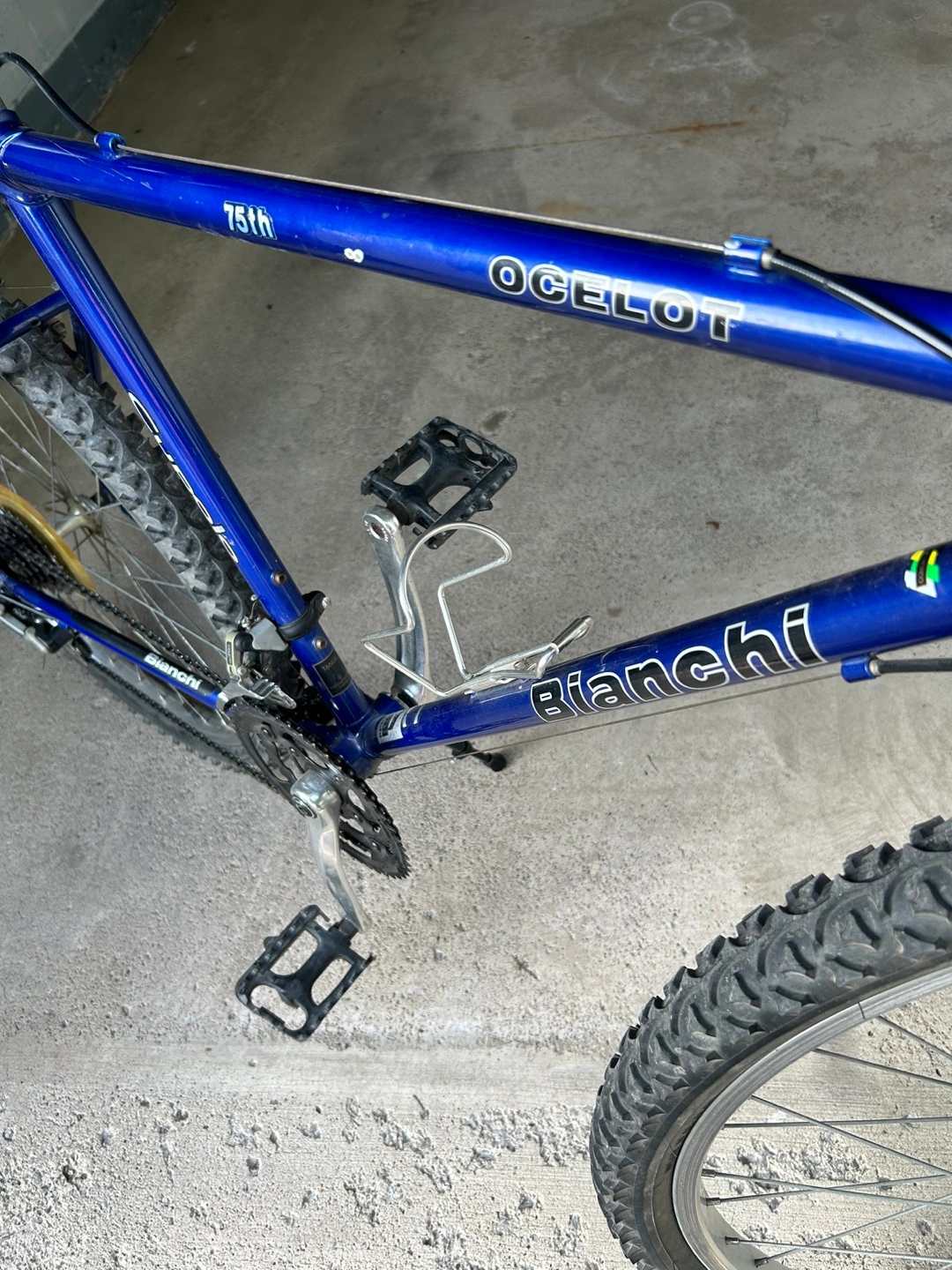 Selling a Bianchi Ocelot 75th Anniversary edition bike in blue. It's a great bike for getting around town or hitting some trails. 1990s. Minor cosmetic flaws due to its age. It goes as high as $500s USD as can be seen in the last picture. Trying to get rid of it as I dont ride no more.