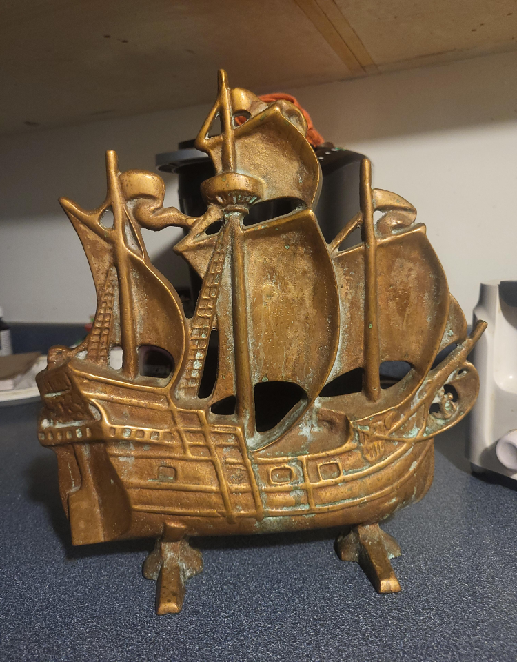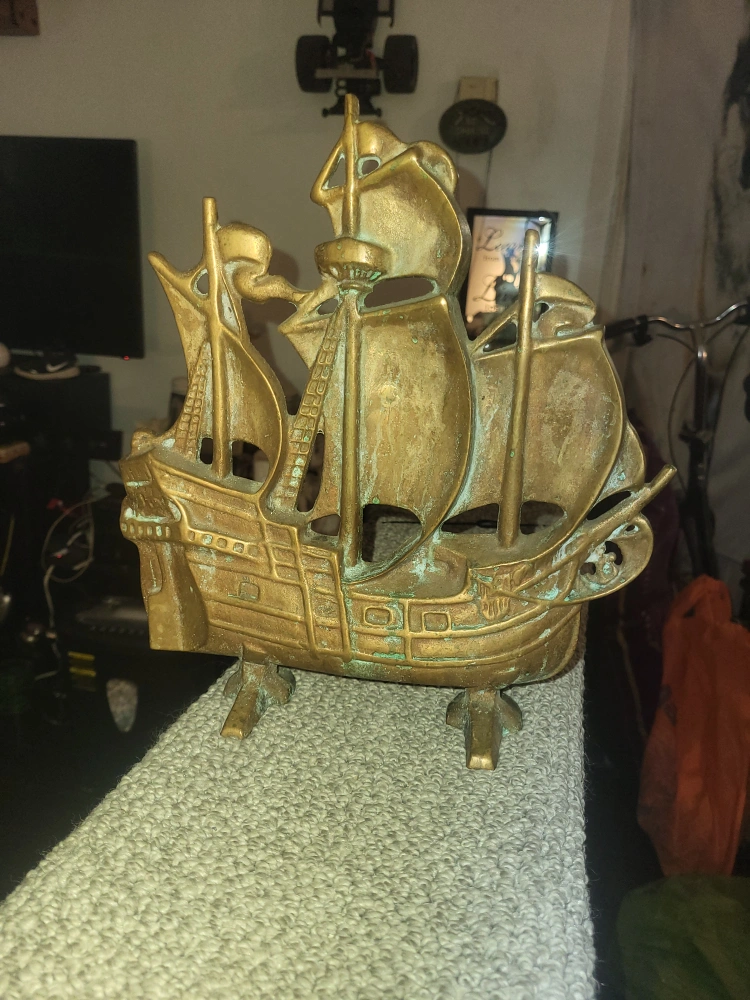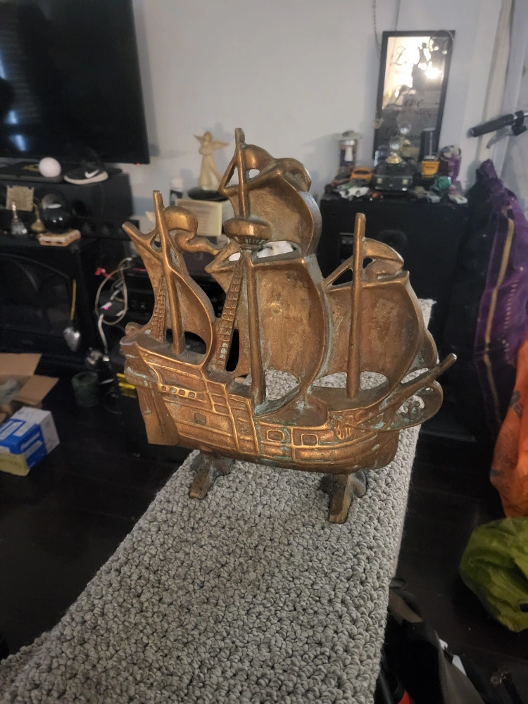 Selling a vintage brass galleon ship. This cool piece would be great as a decorative item in your home. It has a nice patina from age and use, adding to its vintage charm