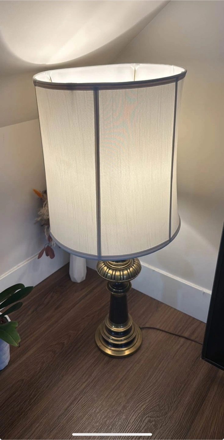 Selling a beautiful table lamp with a brass-finishq base and white lampshade. • Timeless and elegant design • Perfect for bedroom, living room, or office • In excellent working condition • Lampshade clean and intact • Adds a warm and cozy ambiance