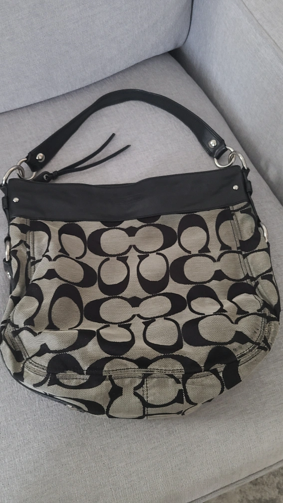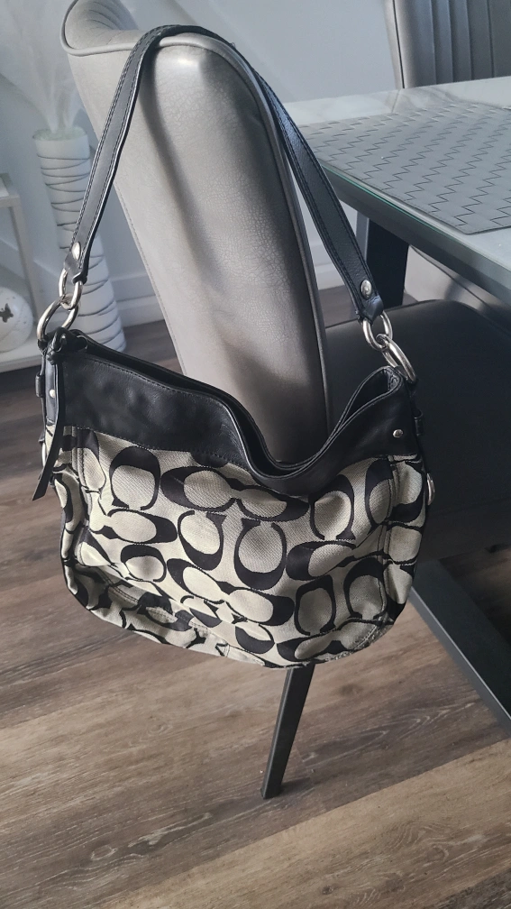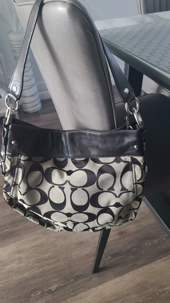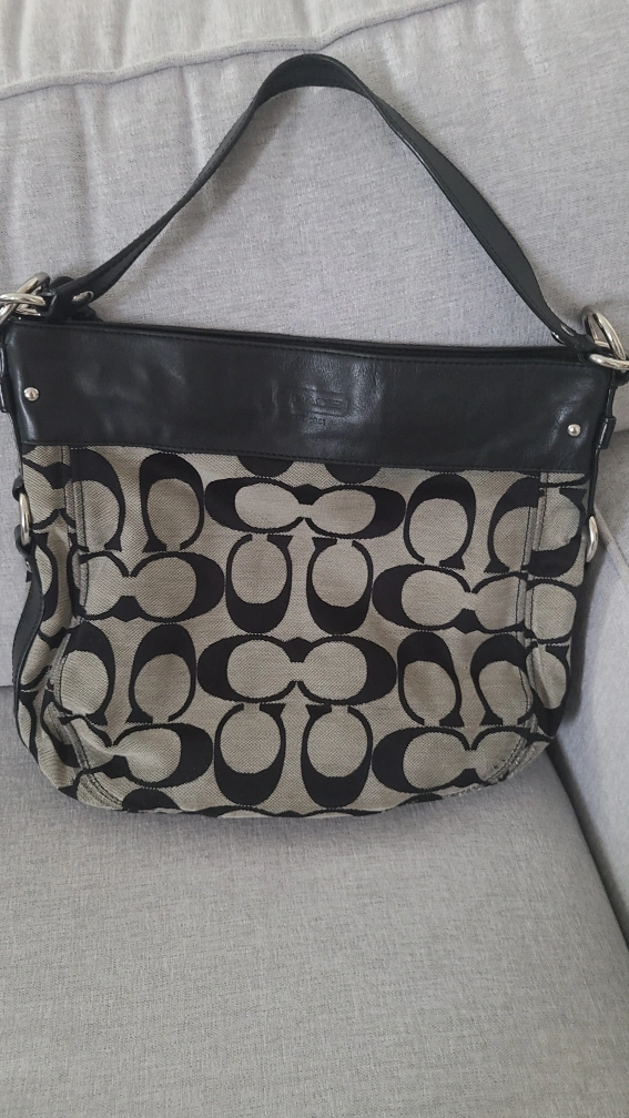 Vintage Coach Signature Shoulder Bag.It's a used Bag got sign of wear good condition and durable material.It's clean 1 zip pocket 2 slip pockets and zip closure Bag.