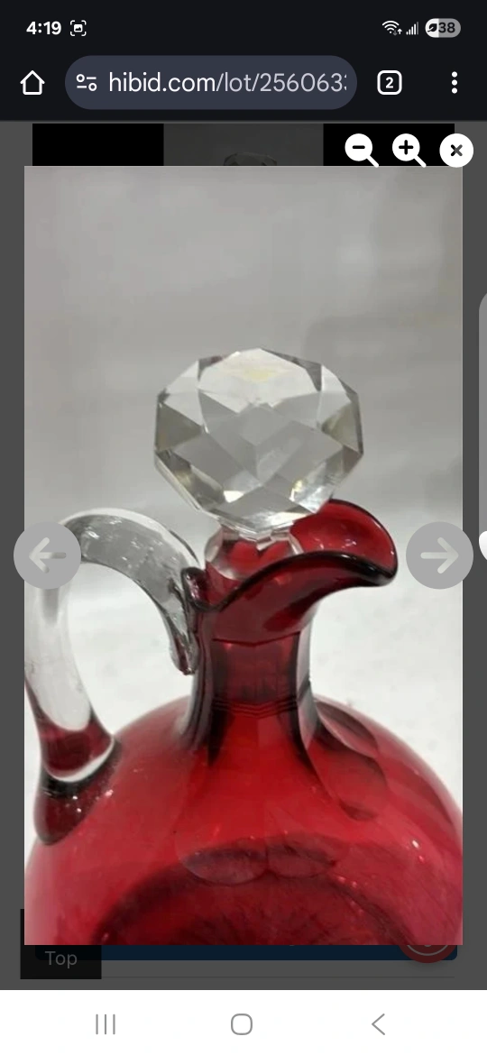 Here's a beautiful vintage cranberry glass decanter, perfect for adding a touch of elegance to your home. It features a unique crystal stopper that catches the light wonderfully. It's in great condition and ready to be used or displayed