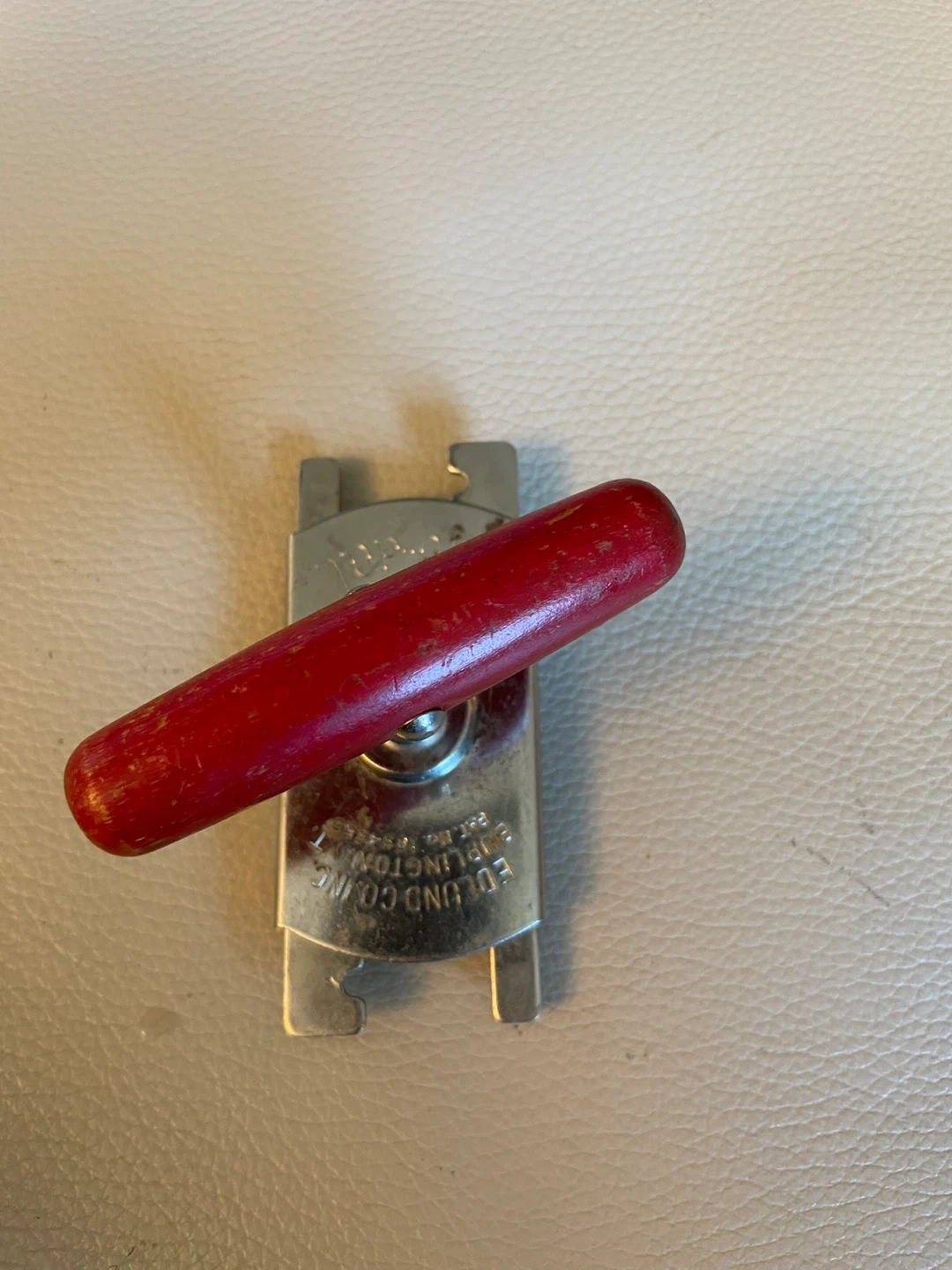 Selling a vintage Edlund jar opener! It has a red wooden handle and a metal base. It's in really good condition for its age and would be a great addition to any kitchen or collection . Located in Osborne Village with easy access to driveway for pickup Accepting etransfer for guaranteed hold and cash transactions are FCFS Please see my other listings as I am downsizing. Thanks