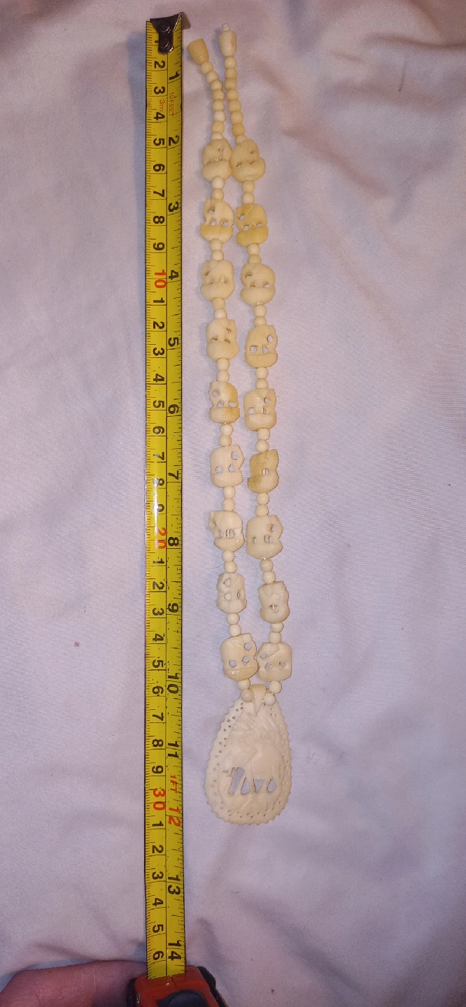 Vintage Elephant Bone Necklace with detailed chain pieces