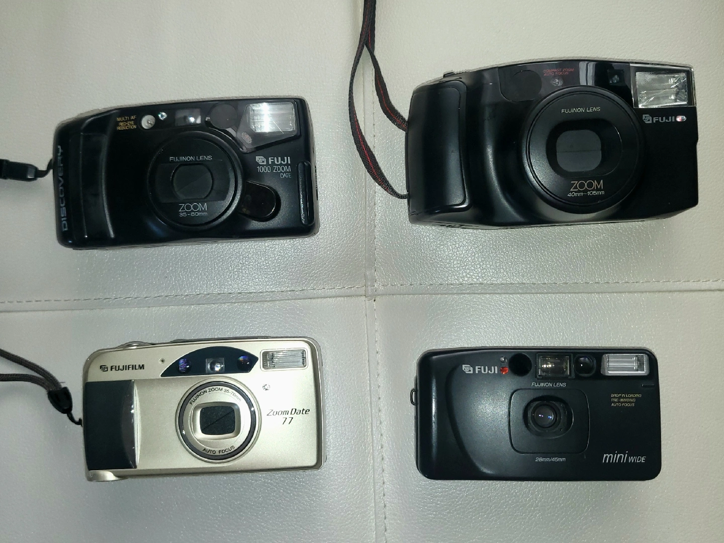 Selling a bundle of vintage Fuji film cameras! Great for collectors or anyone interested in film photography. Includes various models like the Discovery 1000 Zoom Date, Zoom Date 77, FZ 2000M, and Mini Wide. All cameras show signs of use but all tested and working. Lot or individual ($30- each, Mini-Wide at $50 with new battery) sale. Free film but battery extra at $5- each. Best offer accepted.