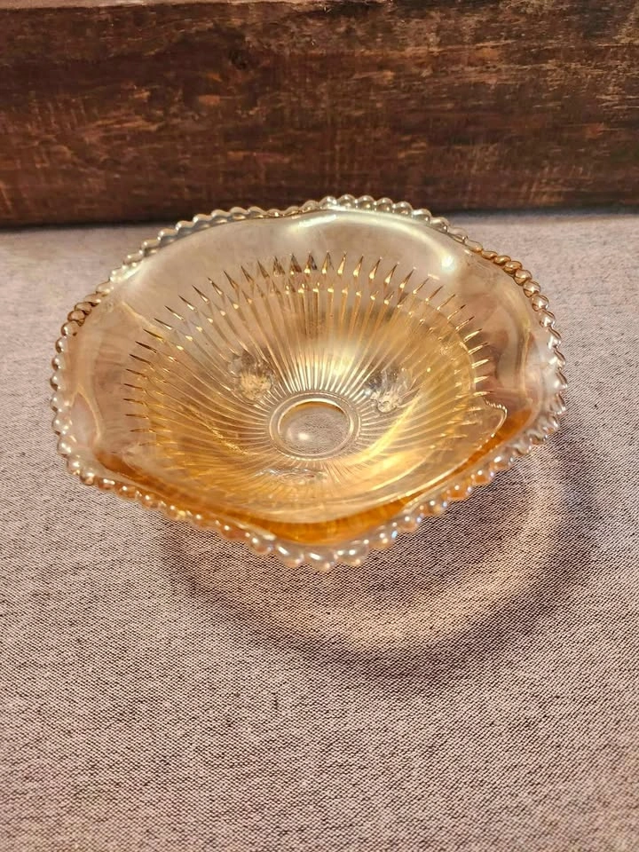 Jeanette Glass - "Anniversary Iridescent" 3 Toed Footed Bowl - Marigold Carnival Glass - Vintage Glassware 6" in diameter and 2.5" high Pick up in Welland :)