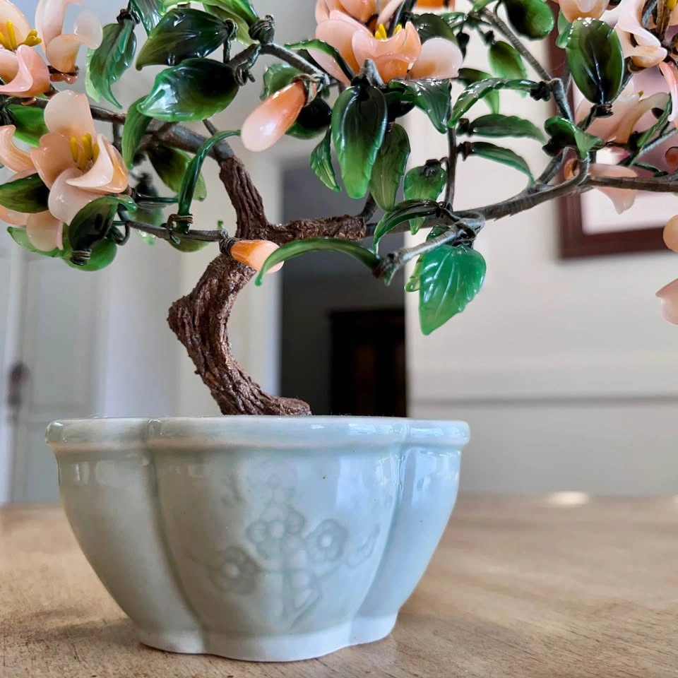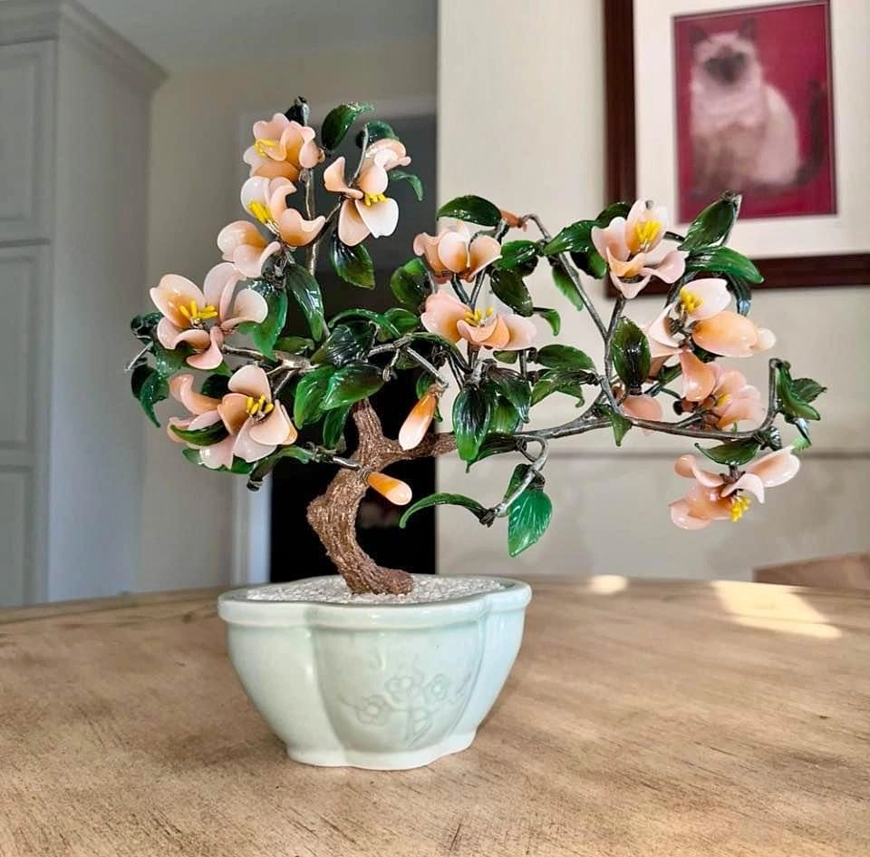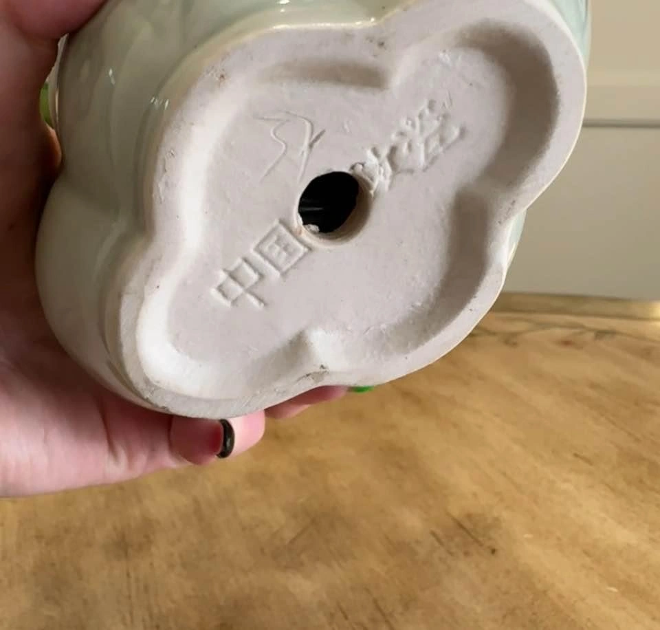 Pick up in Niagara Falls Ontario, view my other listings. Slight damages where shown in photos (some glass petal is broken off) hardly noticeable. From base to top 12”. From one side to other side horizontally on plant part 10.5-11”. Pot/Panter Base Measurements: 2.5” tall, 5” across planter, 3.8” wide on widest part of planter