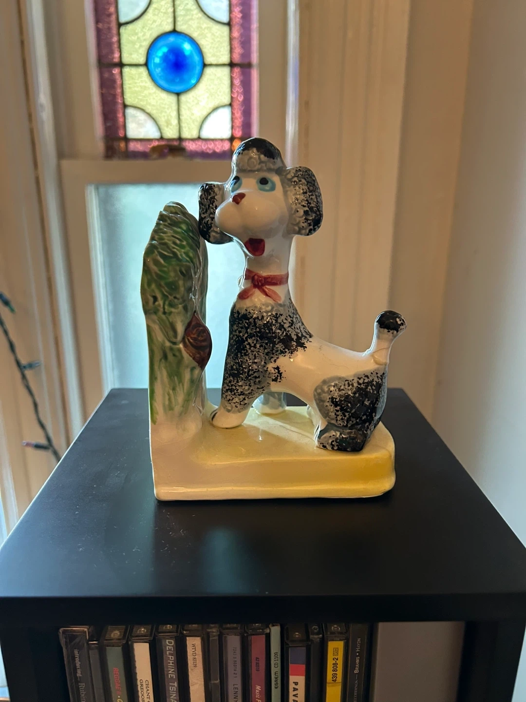 Selling a charming vintage poodle figurine made in Japan! This unique piece features a black and white poodle design. It's a lovely addition to any collection or a cute decorative item for your home.