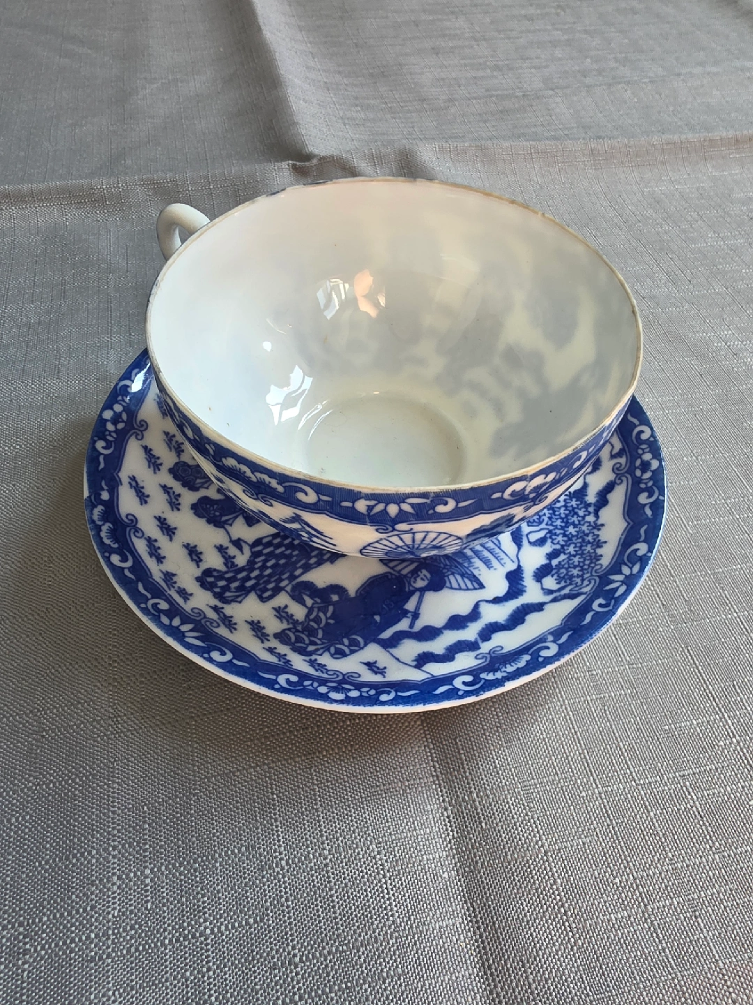 Selling a lovely vintage Japanese tea cup and saucer set. It features a beautiful blue and white design with intricate details. Perfect for collectors or anyone who appreciates fine china! #16