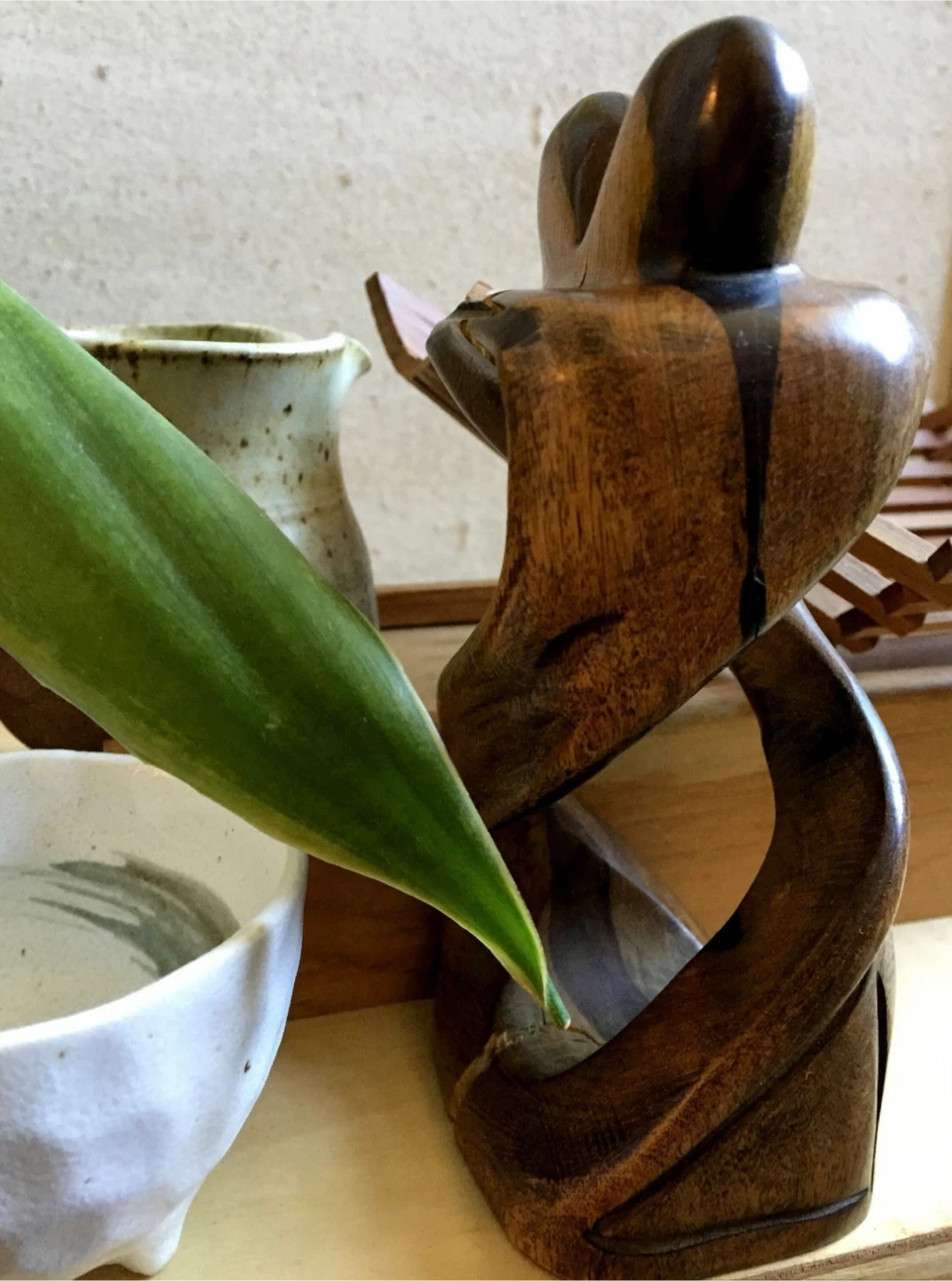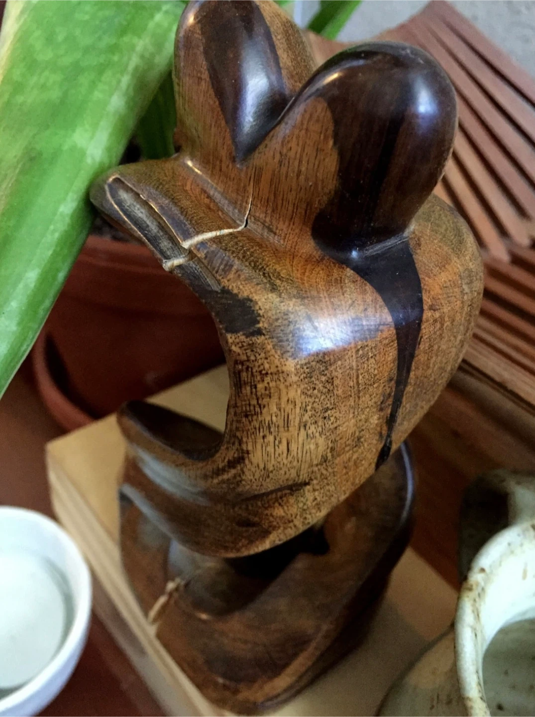 ➡️Cash & Pickup ONLY First come first serve Vintage hand-carved Zebra wood figurine titled "Till Death Do Us Apart", depicting two lovers in an infinity embrace. This minimalist piece carries a calming presence. A natural crack remains untouched to honor its history,echoing the Japanese philosophy that beauty lies in imperfection. Like wrinkles, the crack adds character and authenticity. MEASUREMENTS HEIGHT- 6 Inches. WIDTH - 2.75 Inches