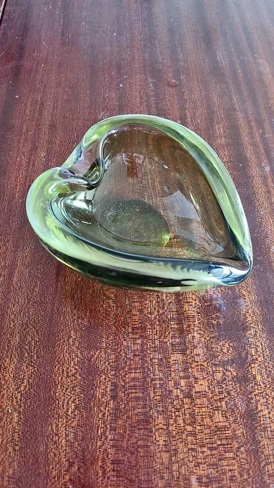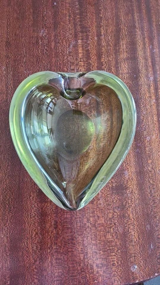 Beautiful hand blown Leaf Shaped heavy transparent Dark Green Murano Glass. Length 5 1/4". Excellent vintage condition. Some light scratches consistent with age and use. Please view all the pictures and contact me with any questions.