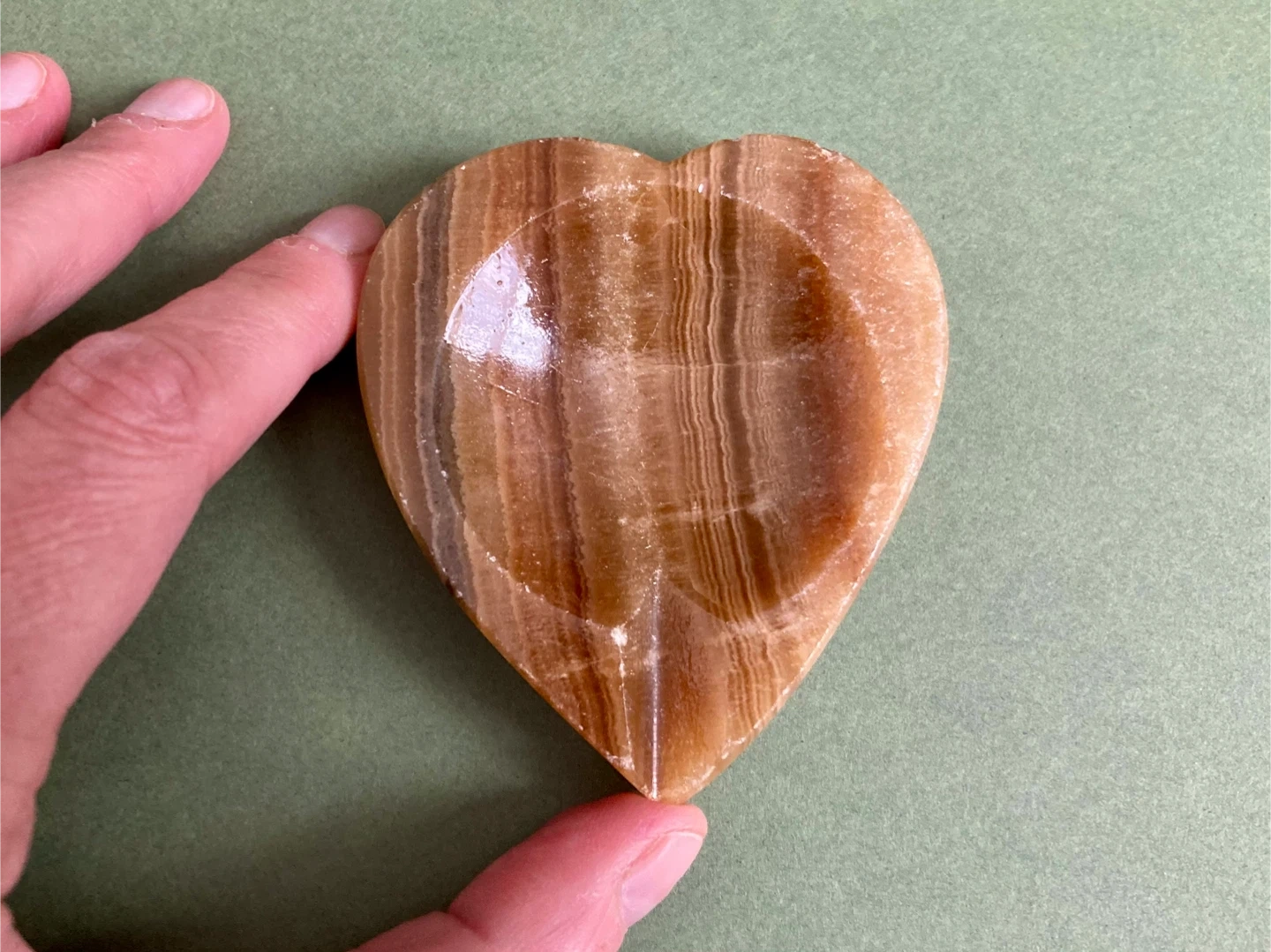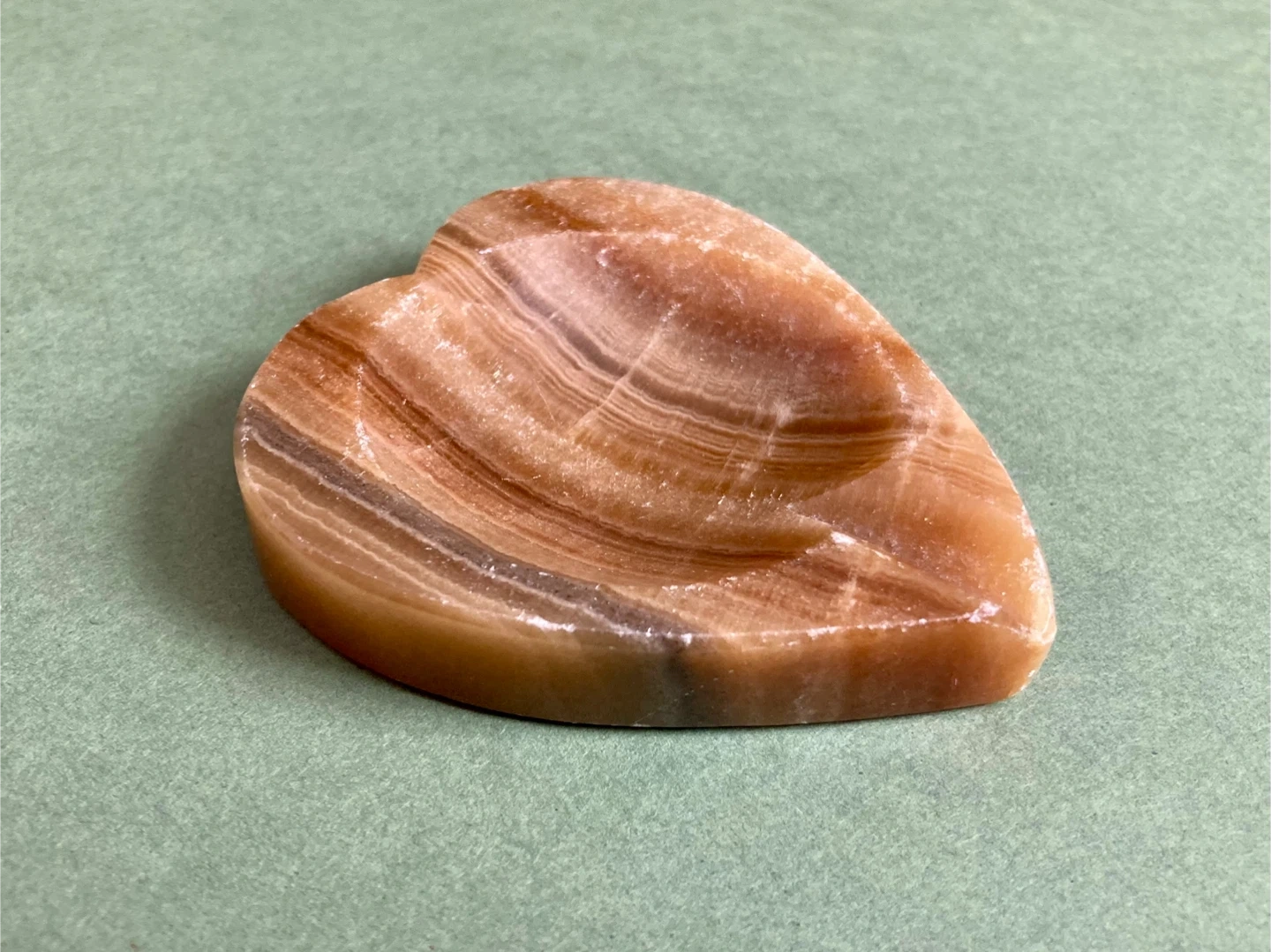 Small vintage Onyx ashtray in a light brown colour carved into a heart shape. Can also be used as a small trinket dish. There is some wear and chips as well as the natural imperfections of the stone. I’ve priced it accordingly. Likely from the 1970s. About 2 3/4” x 3”. pick up in the Ossington and Davenport area. Check my other listings for more vintage home decor items 🙂