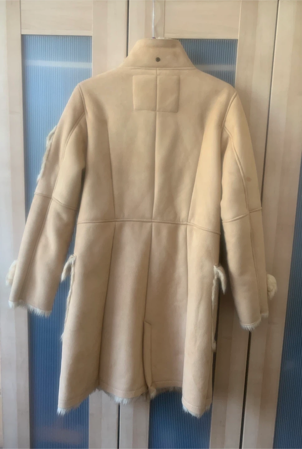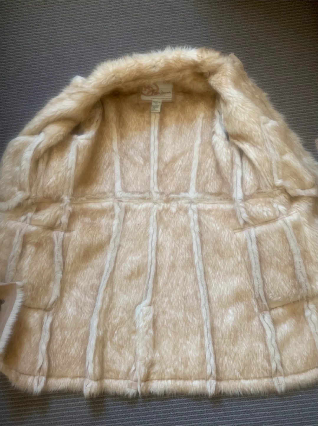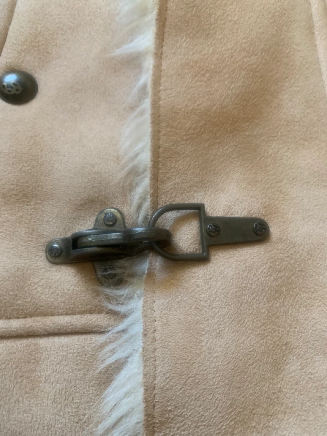 Cozy up in this stylish vintage Pepe Jeans London faux fur coat! It's a size L and features a soft, plush interior and unique buckle closures. The shell is 100% polyester, with acrylic backing. Perfect for adding a touch of warmth and style to your wardrobe. Pick up at Eglinton Ave east at Bayview.