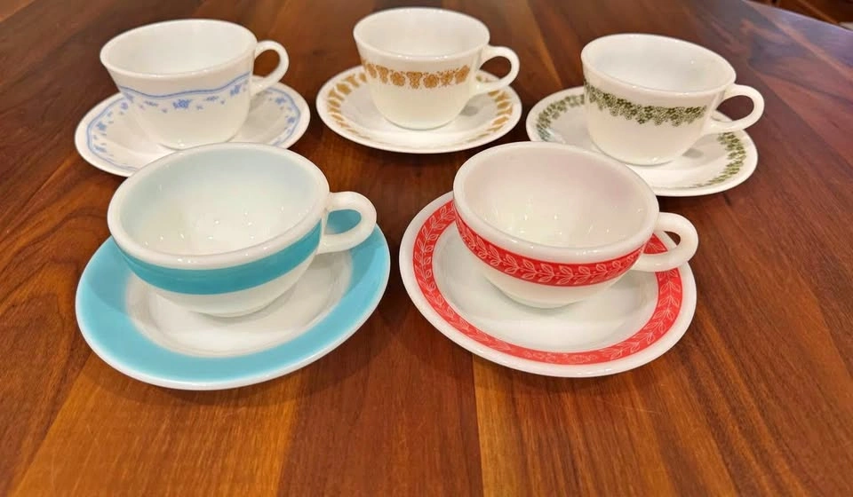 Vintage Pyrex Milk Glass Tea Cup & Saucer Sets