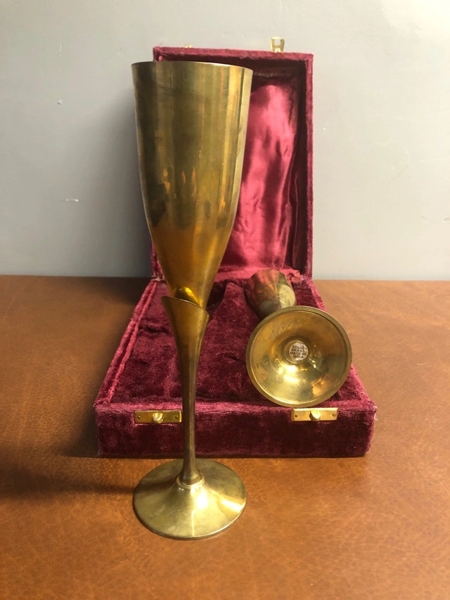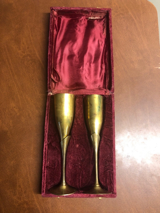 Vintage retro (70s) tulip solid brass wine glasses $40 For Sale By: Owner