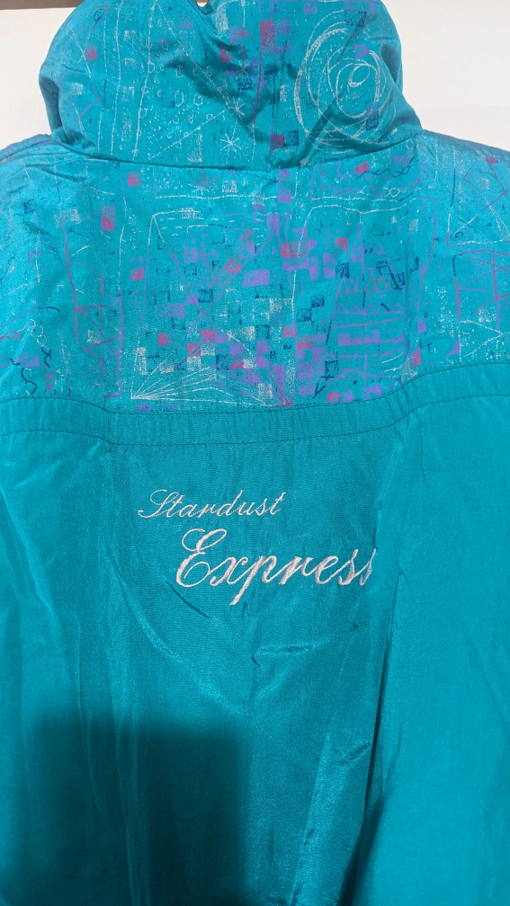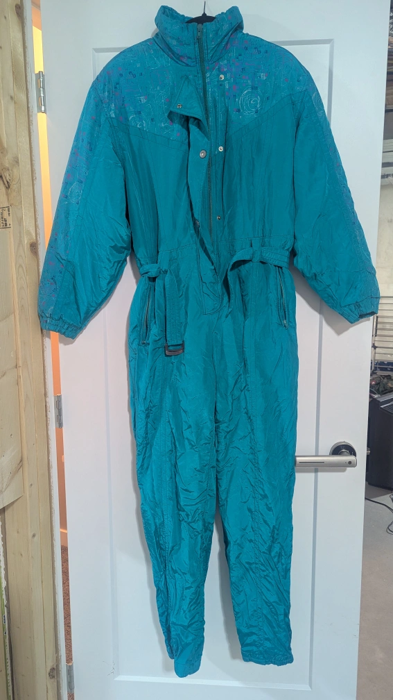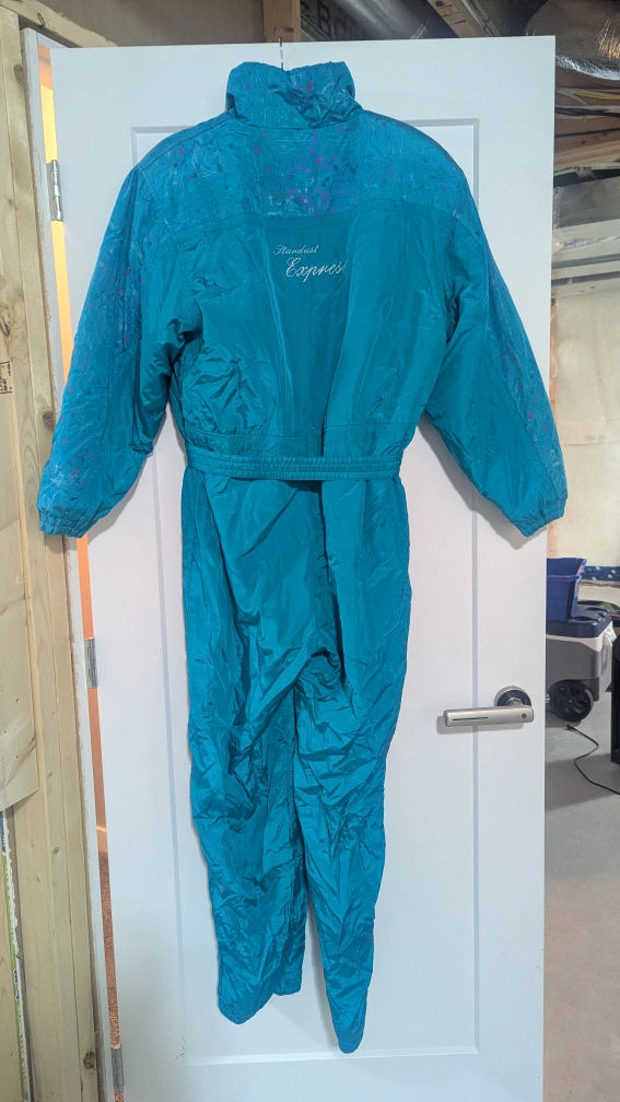 Selling a Stardust Express snowsuit in a vibrant teal colour! It's in great condition and ready for some winter fun. The snowsuit features a unique design on the upper portion and the brand name embroidered on the back. Perfect for staying warm and stylish on the slopes or during outdoor activities!