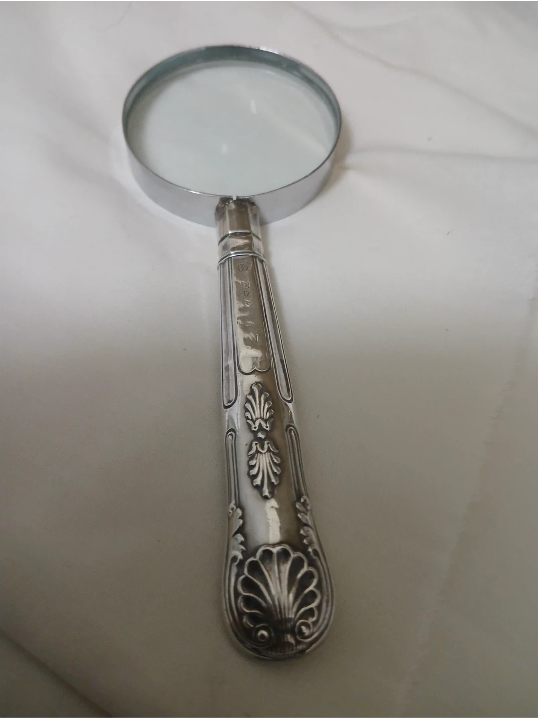 Vintage Sterling Silver magnifying glass. It has a beautiful, ornate handle design. Perfect for reading or collecting! Hallmark 1913