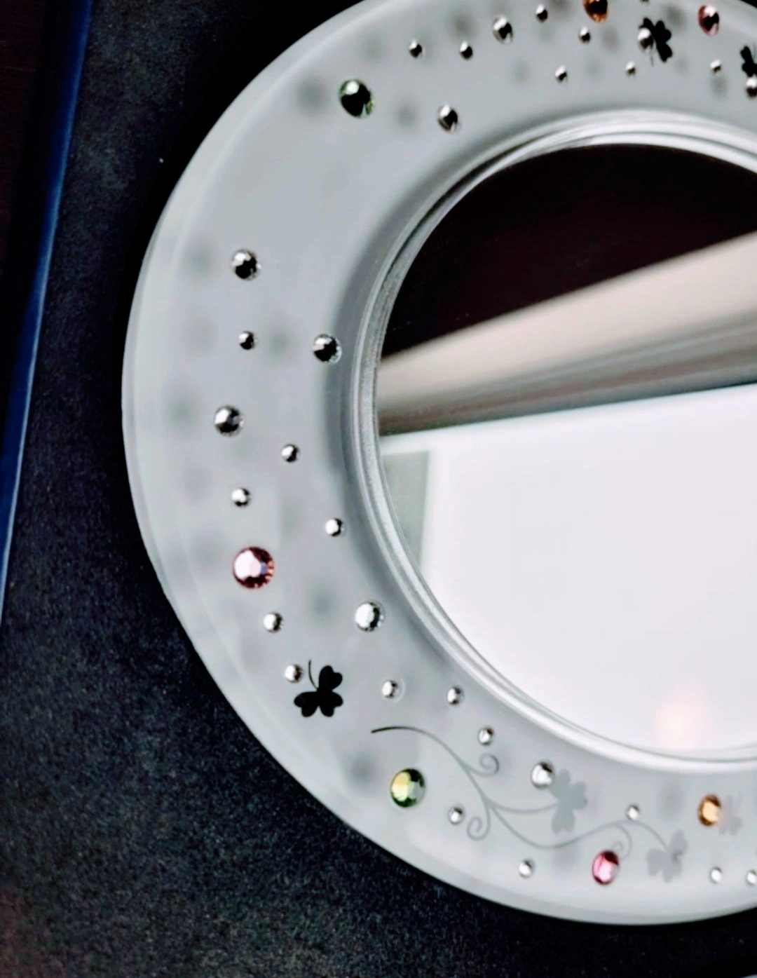 This is a beautiful oval mirror with a Swarovski design and crystals. It is in great condition and perfect for any home. Swarovski Limited Edition crystal make up mirror. Never used. Crystal around the mirror. Bought over 20 years ago.