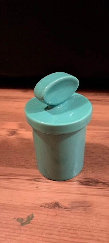 Selling a cute vintage turquoise butter dish with a lid. It's in great condition and perfect for adding a pop of colour to your kitchen!
