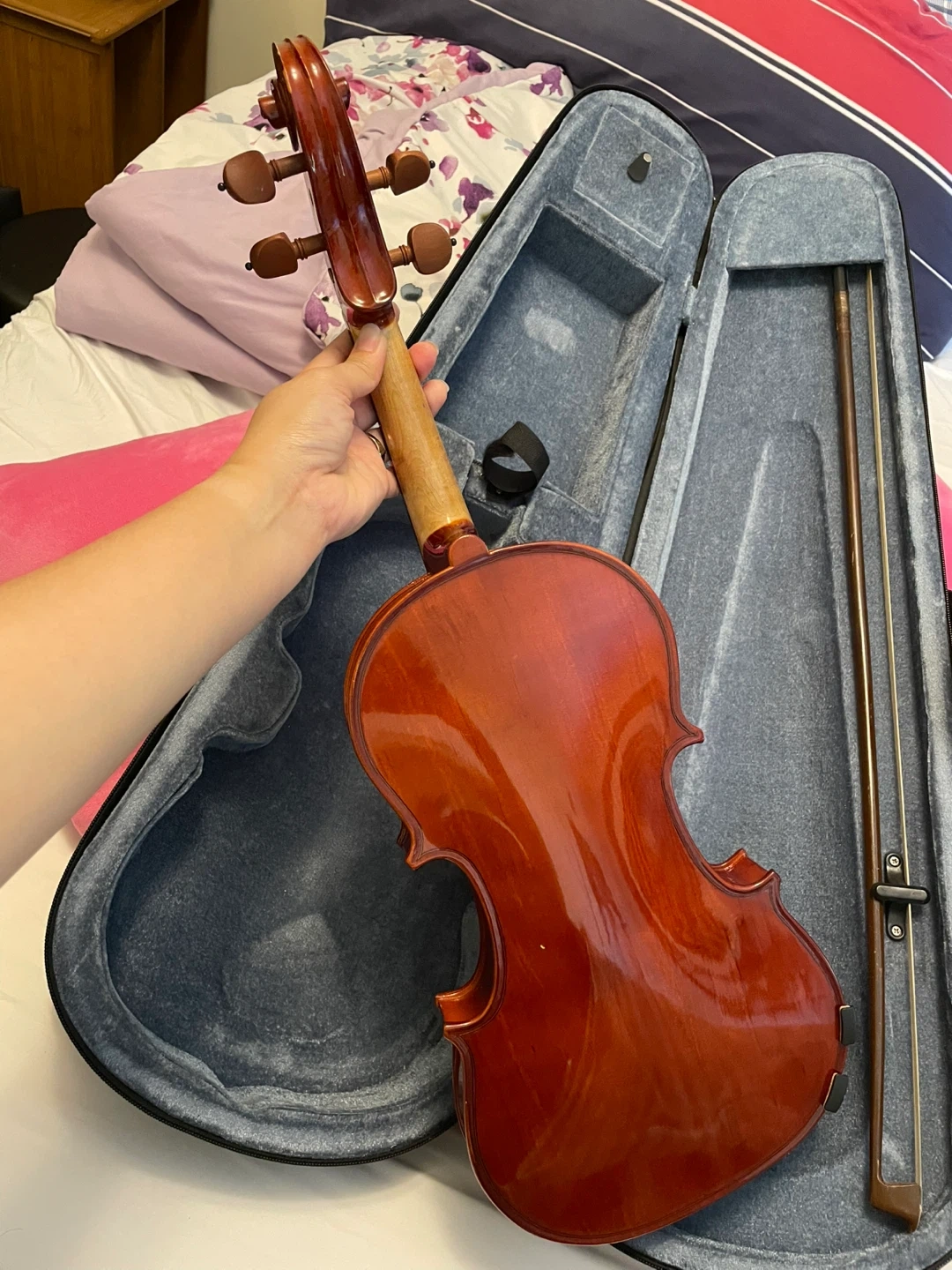 Selling a violin that comes with its case and bow. It's in good condition and ready to play! Great for beginners or experienced players alike. Comes with everything you need to get started