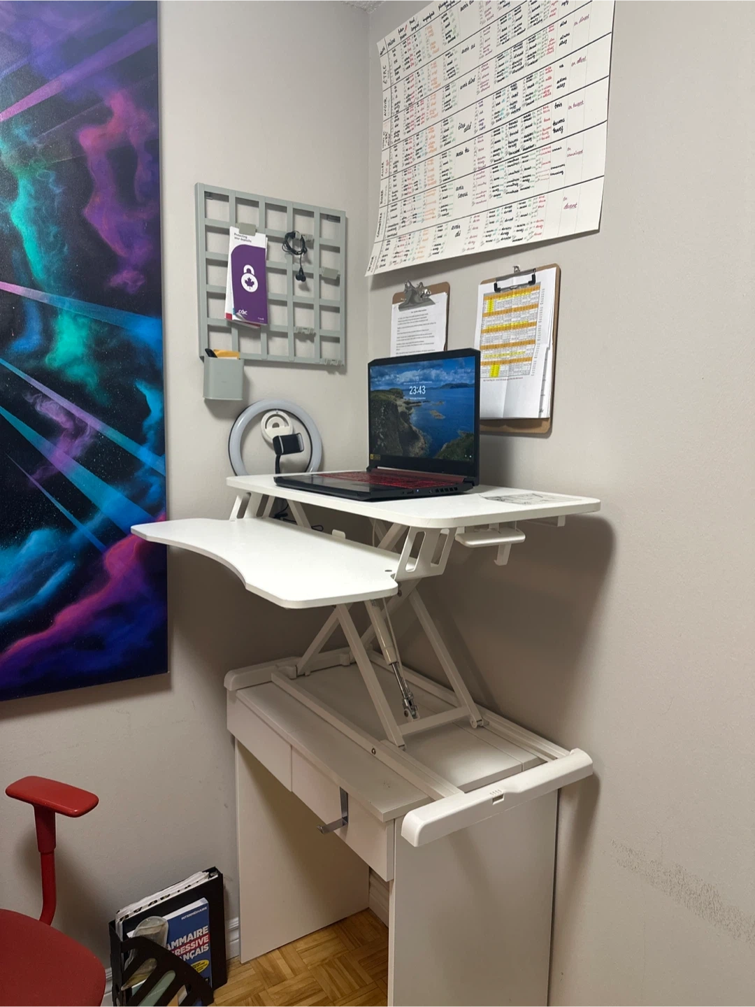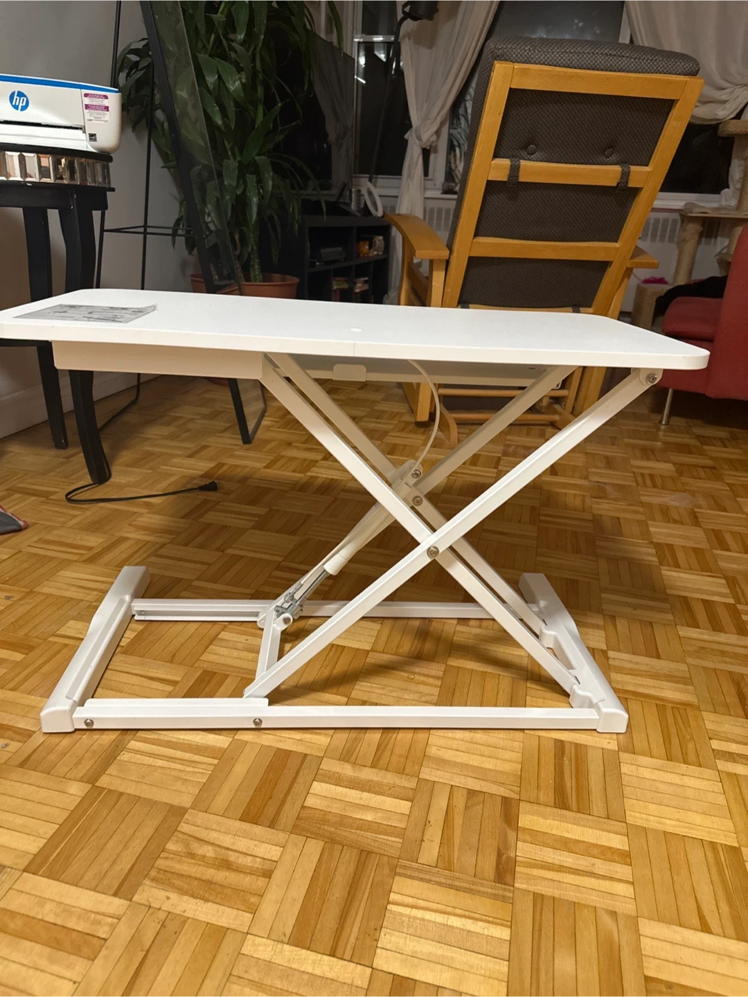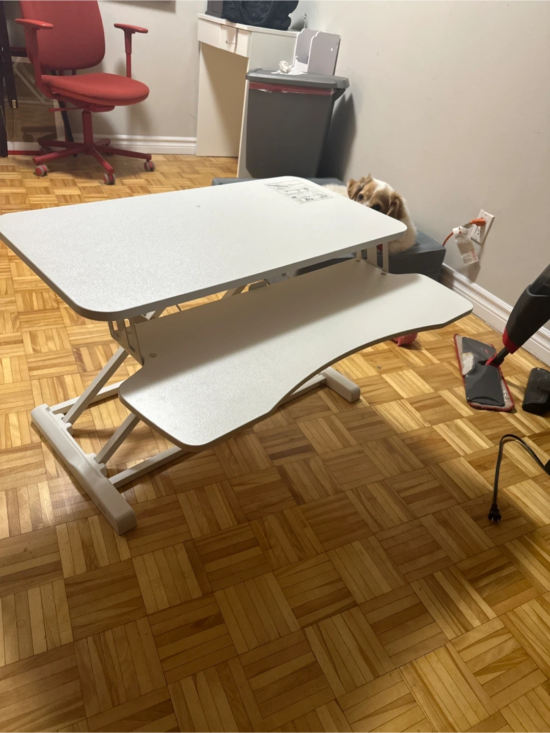 Selling a white adjustable height standing desk. It's in great condition and perfect for working from home! It's easy to adjust to your preferred height, making it comfortable for both sitting and standing. This desk is a great way to improve your posture and stay active throughout the day Feel free to negotiate!!!
