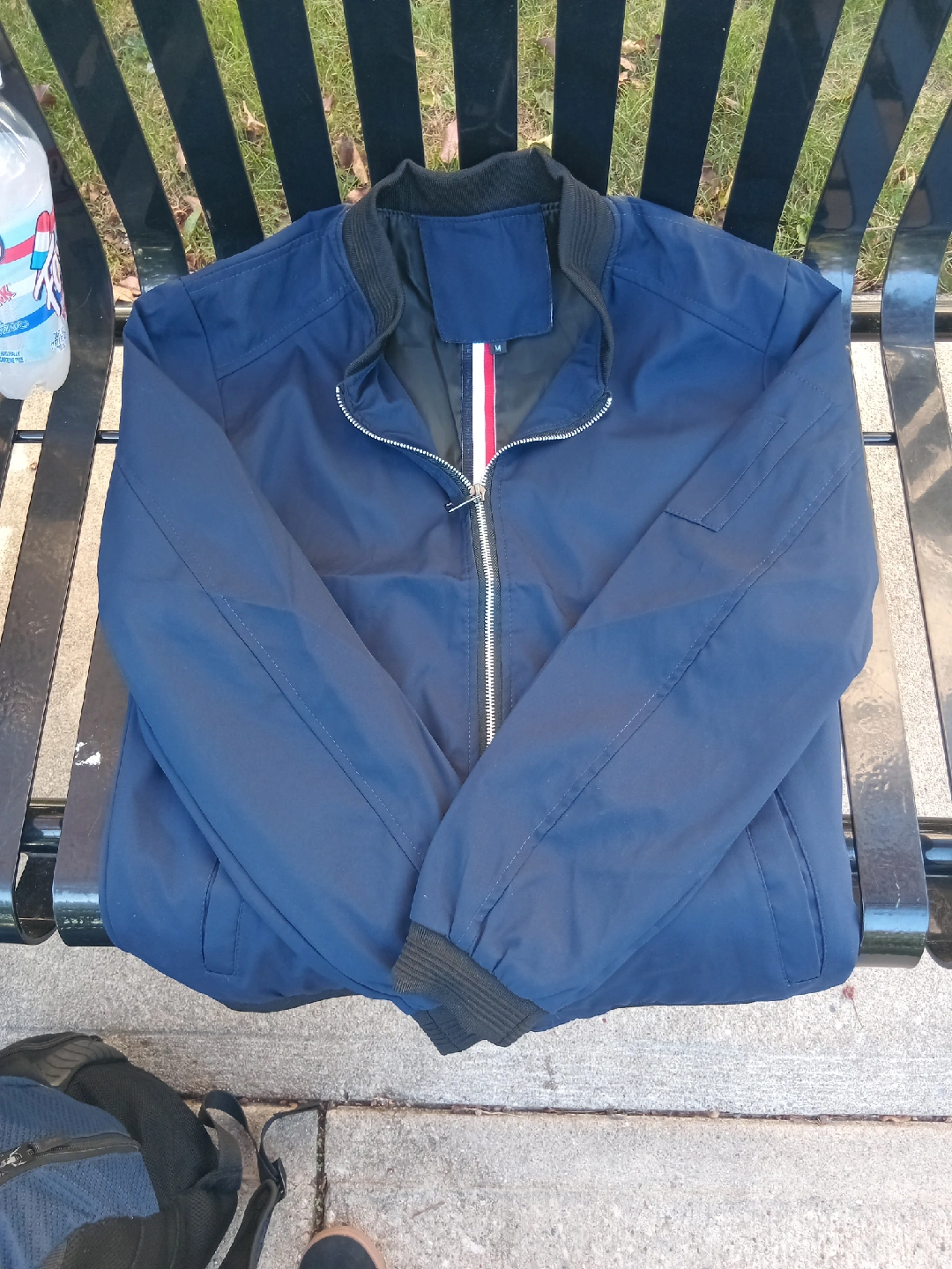 Selling a blue Vogue bomber jacket. It's in great condition and perfect for spring or fall weather! The jacket features a full zip closure and ribbed cuffs and hem.