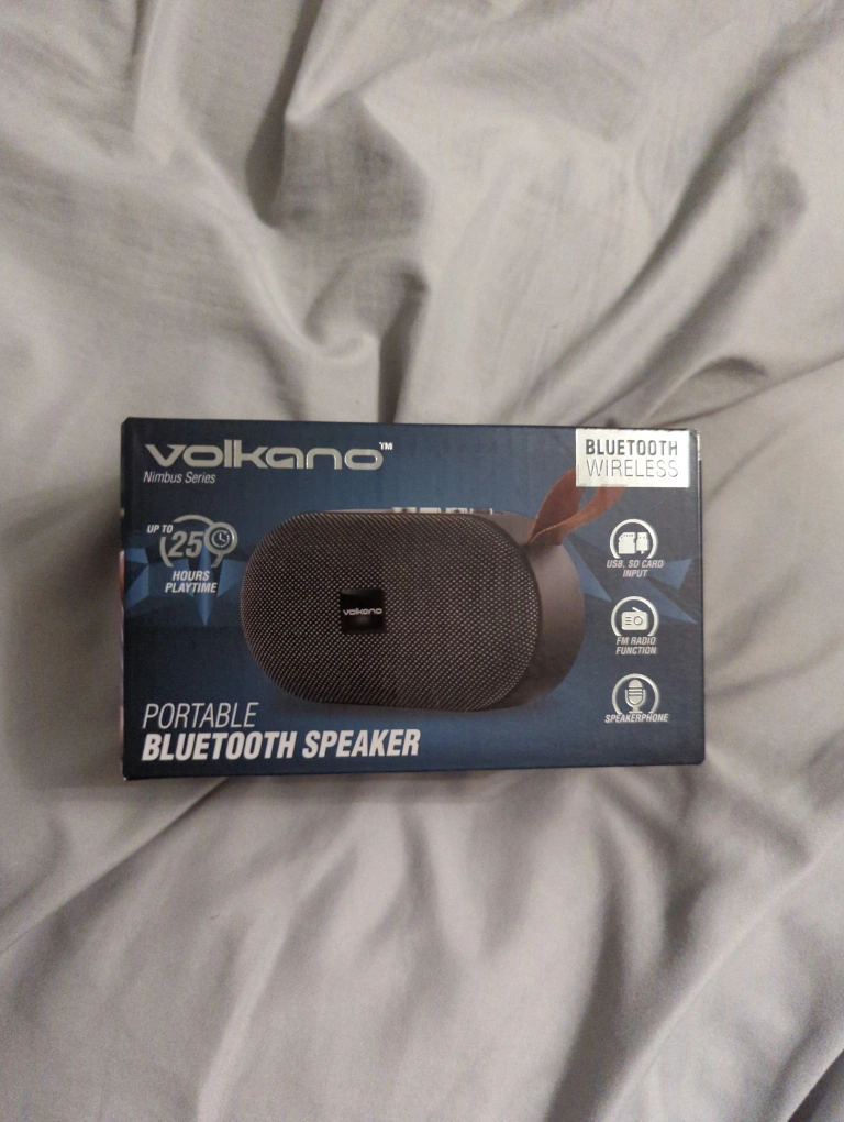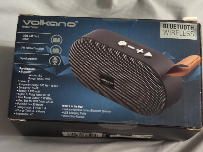 Selling a Volkano Nimbus Series Bluetooth Speaker! It's in great condition and comes with the original box. What's included: - Volkano Nimbus Series Bluetooth Speaker - USB Charging Cable - Instruction Manual Key features: - Bluetooth 5.0 - Up to 25 hours of playtime - USB and SD card input - FM Radio function - Speakerphone