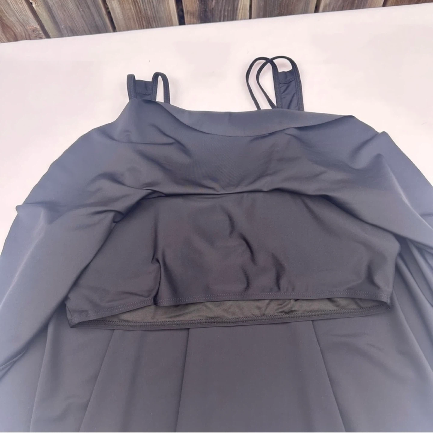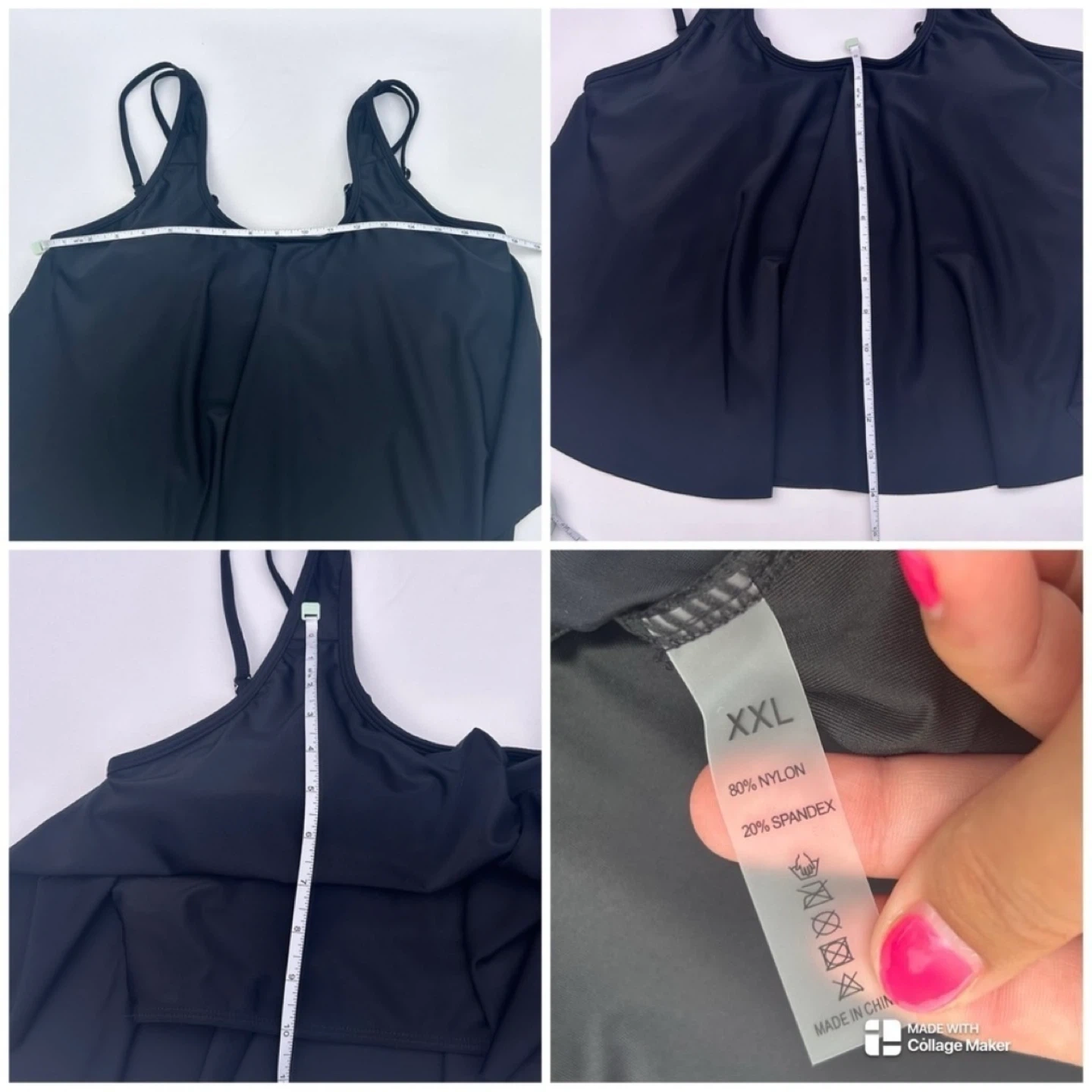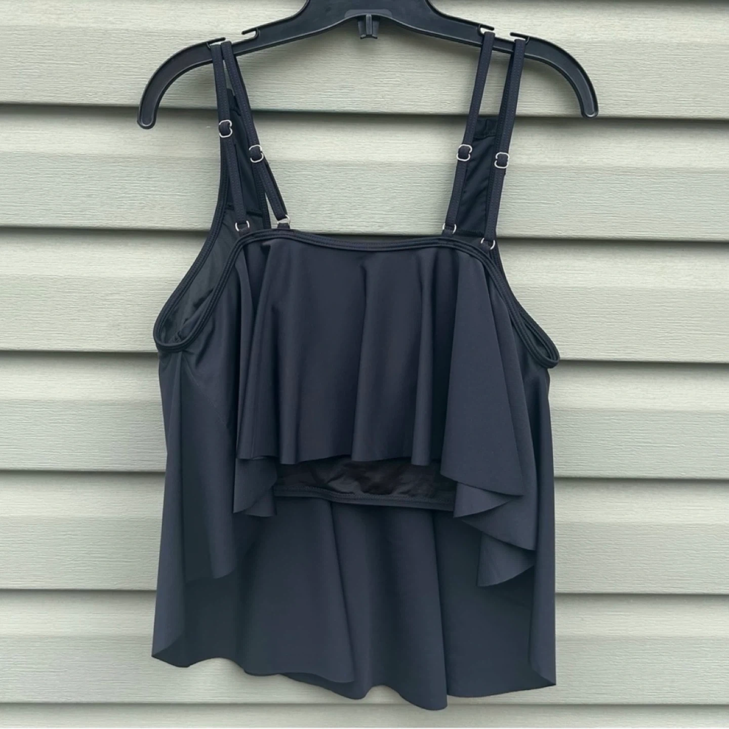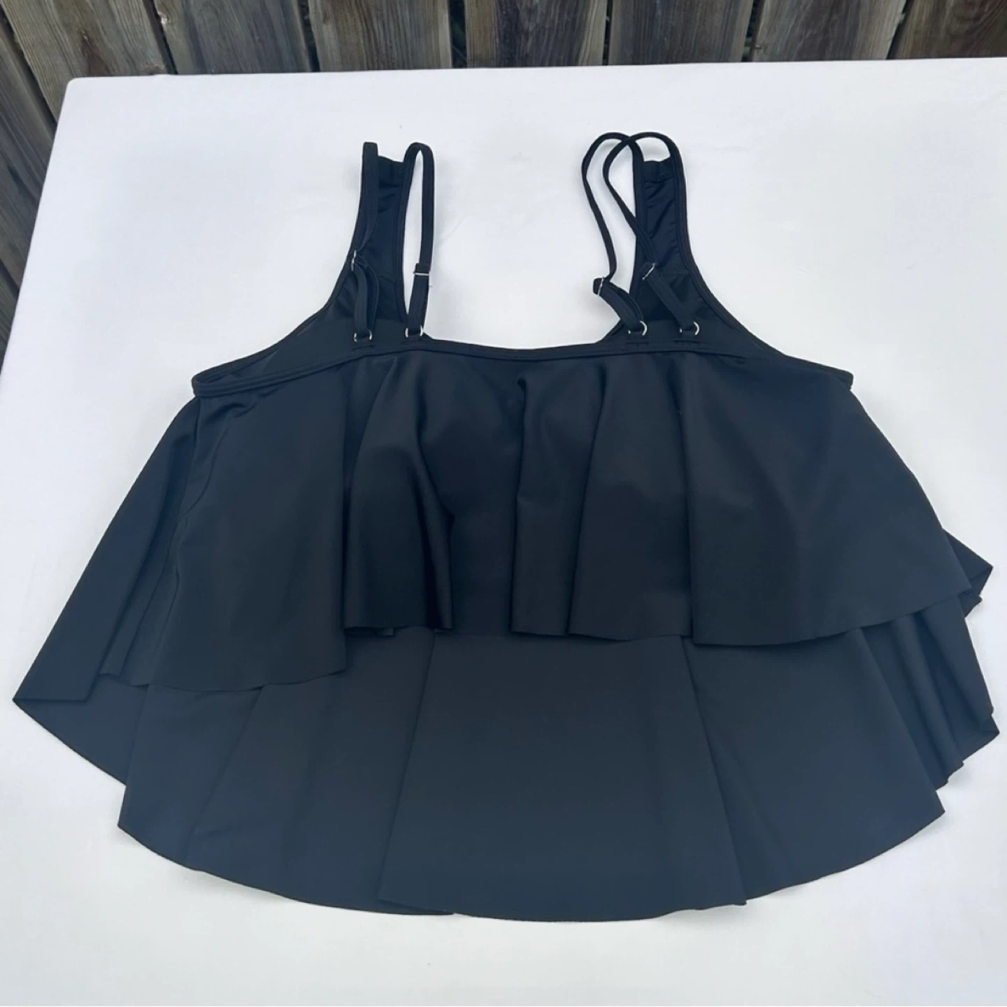 New in package! Black flounce ruffle bikini swimsuit top from Vozobi. Flowy outer layer with shelf bra inside. Removable padding. New, never worn. Women’s size XXL. See photos for measurements. Cross posted. Sku: Top B Winnipeg - Pick up only (Located 2 blocks west of Polo Park). Shipping options available through other platforms message me for details.