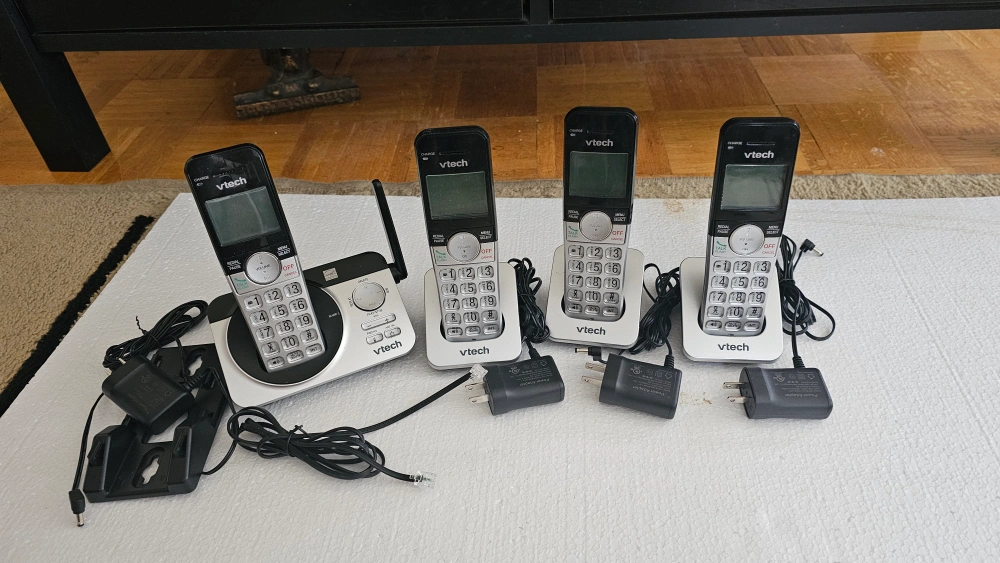 Set of 4 VTech Cordless Phones, including chargers and cords. Batteries included phones used for at least 1mo. Then we went with another provider, so we stopped the landline and went to cell only.