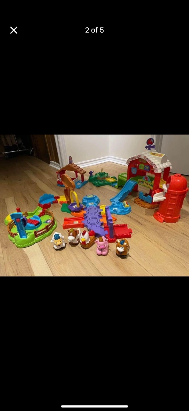 The VTech Go! Go! Smart Animals Grow & Learn Farm is perfect for little ones aged 1-5 years! It's a fun and interactive playset that will keep your child entertained while they learn about animals and farming. Includes farm animals and a train to ride around the track! These sets are $200 without the animals Willing to part for both $30