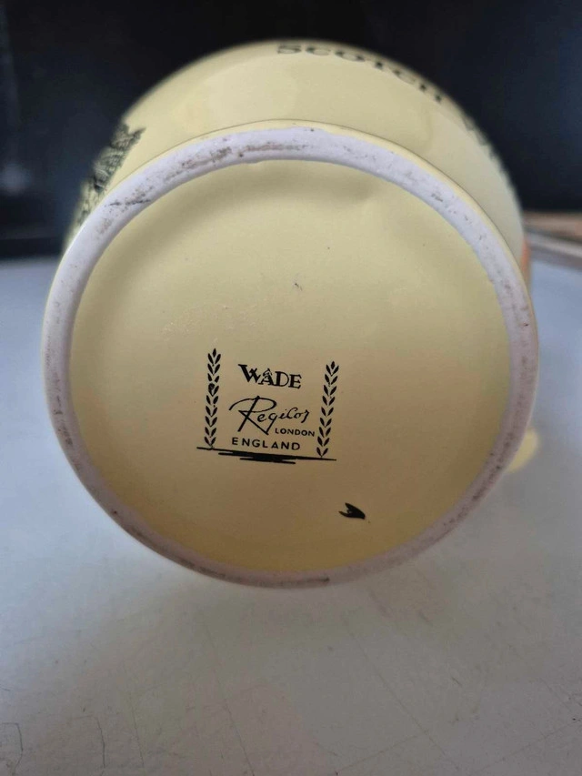 Check out this vintage Wade Dewar's Special Scotch Whisky pitcher! It's a charming piece with a classic design. I have owned it for a number of years and it has been on display in my home. It is in good condition. It measures about 4 inches in height. * Brand: Wade * Type: Pitcher * Material: Ceramic * Colour: Yellow I think it's time for this lovely jug to find a new home. If you're seeing this ad, yes, it's still available!