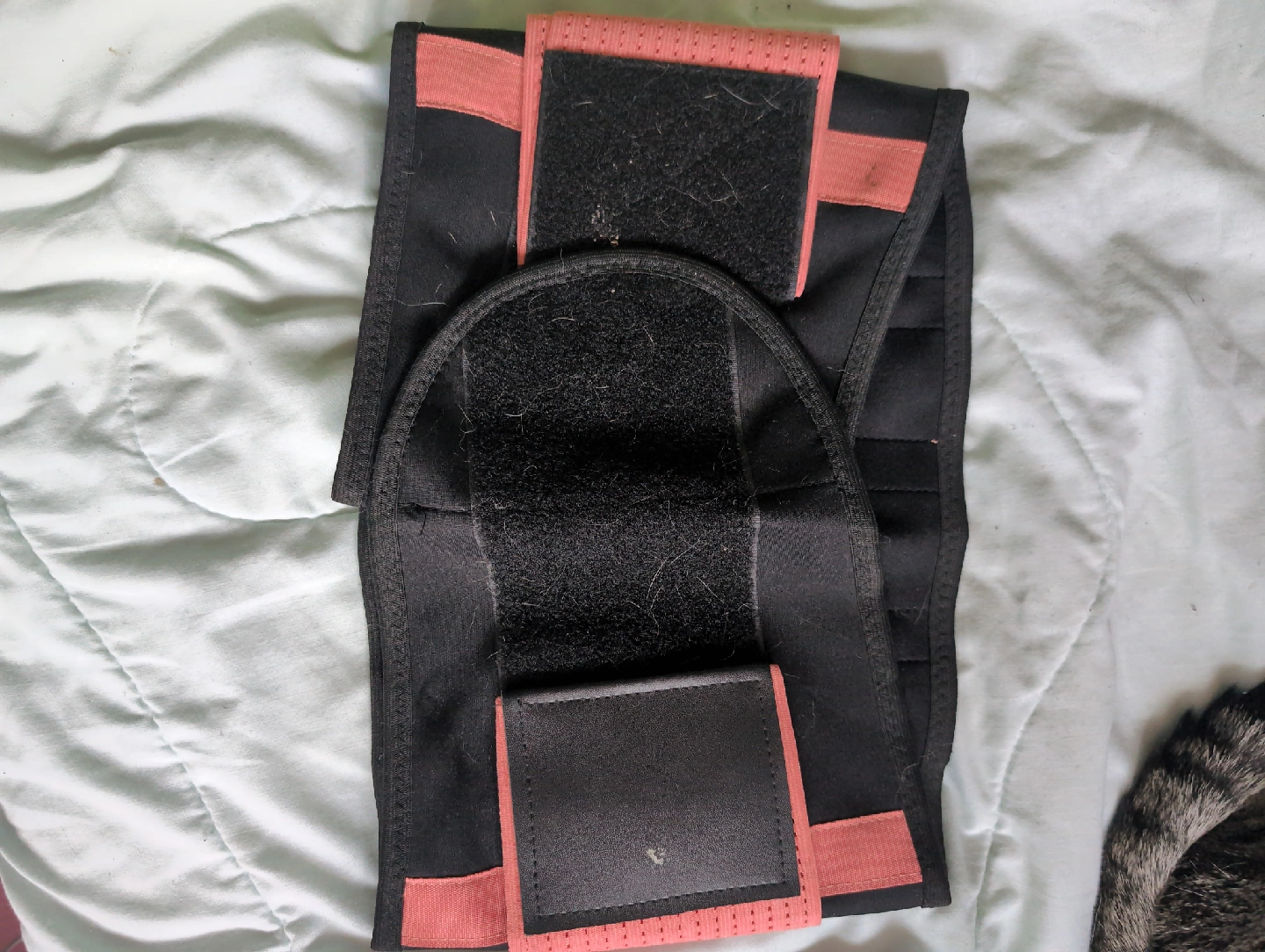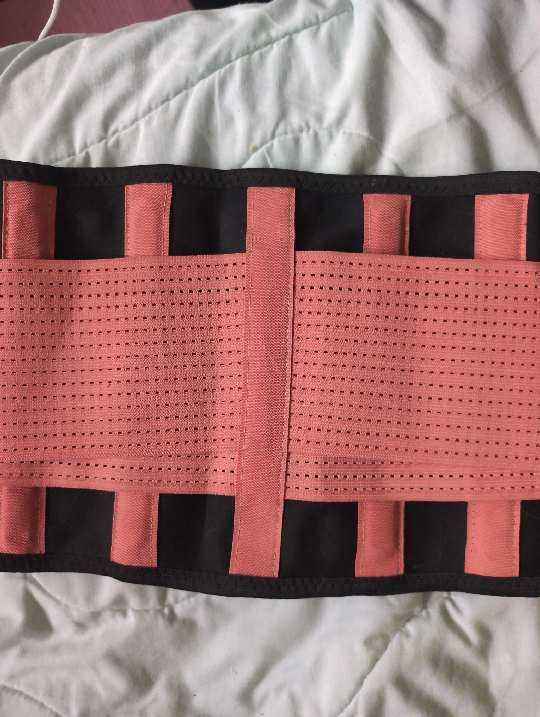 Selling a waist trainer belt. It's black with coral/peach coloured accents. It's in good condition and ready for a new home it's size med