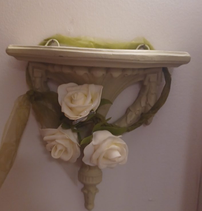 A charming wall shelf adorned with delicate roses, perfect for adding a touch of elegance to any room! It's in great condition and ready to find a new home