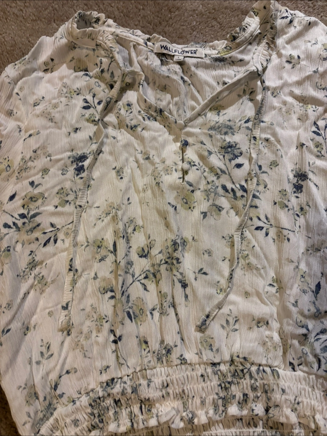 Selling a cute Wallflower blouse in size L! It features a lovely floral pattern and a comfortable fit. Perfect for a casual day out or dressing up for a special occasion. Come check it out!