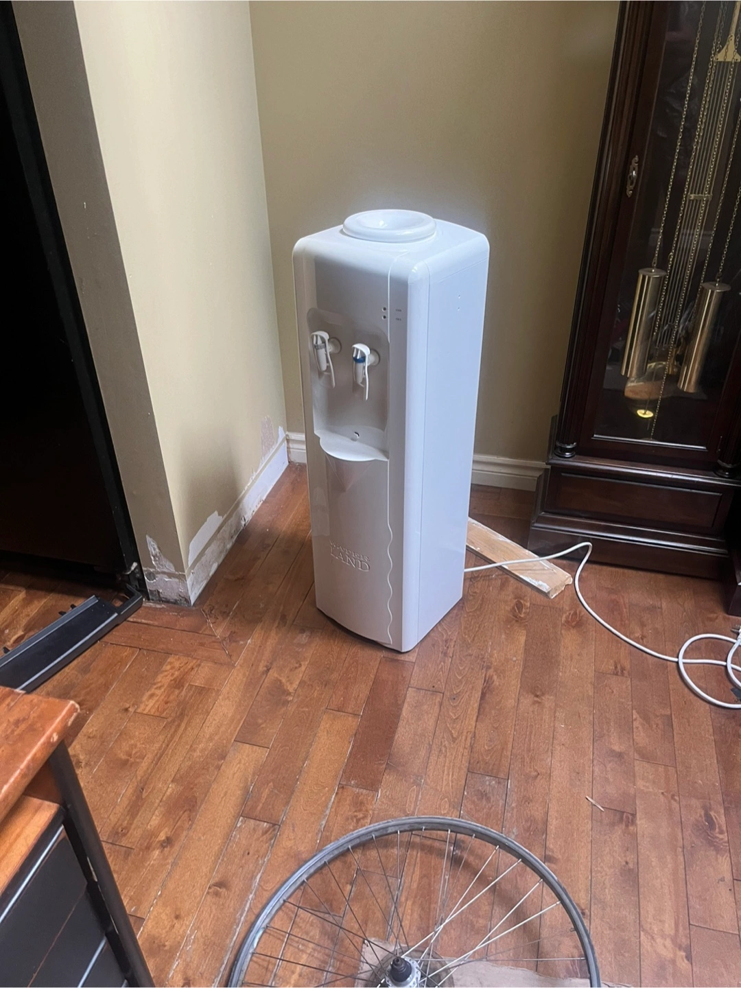Selling a water cooler dispenser. It's in great shape and ready to keep you hydrated! Perfect for a home or office setting. It's a convenient way to have cold and hot water on demand