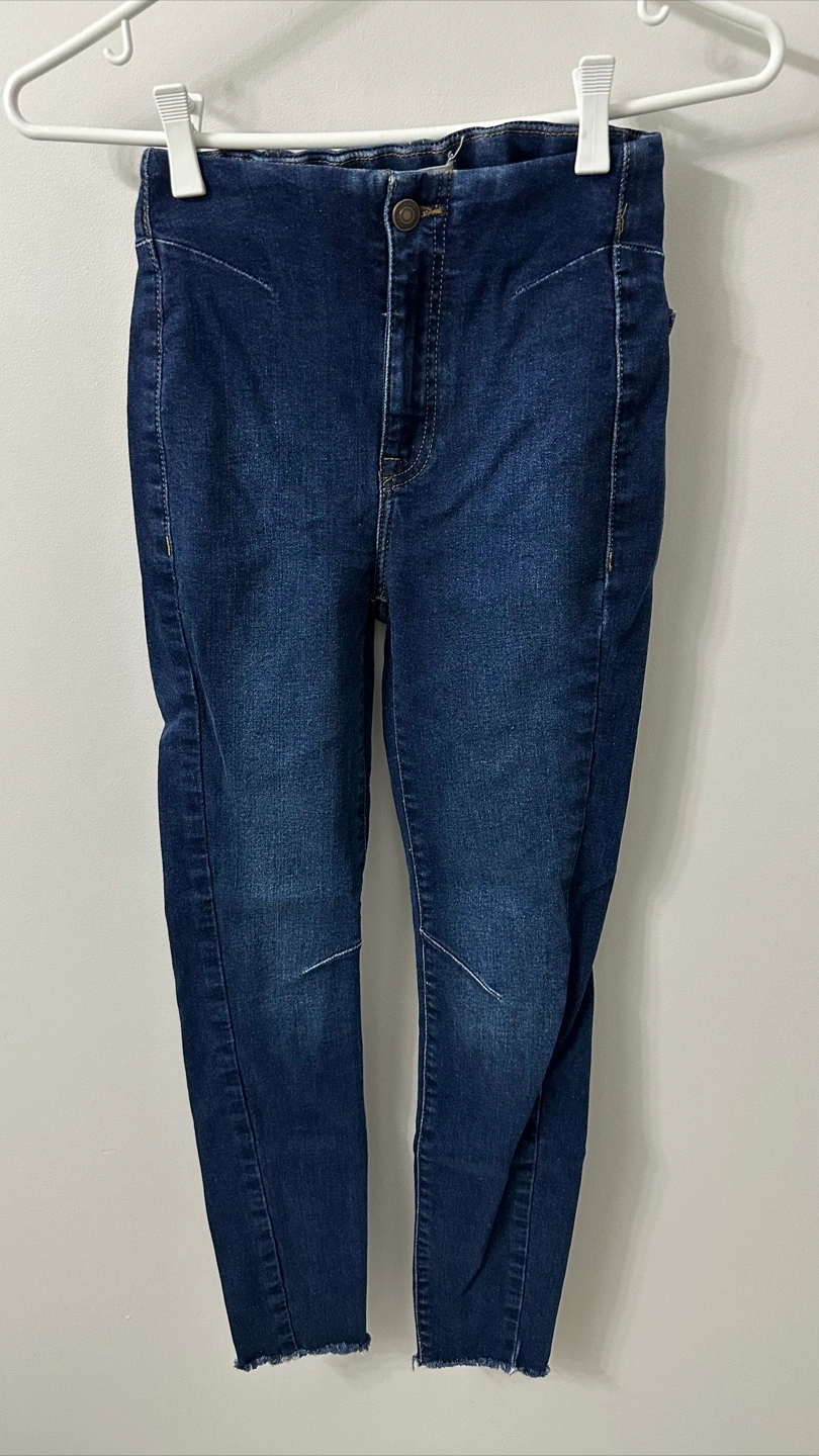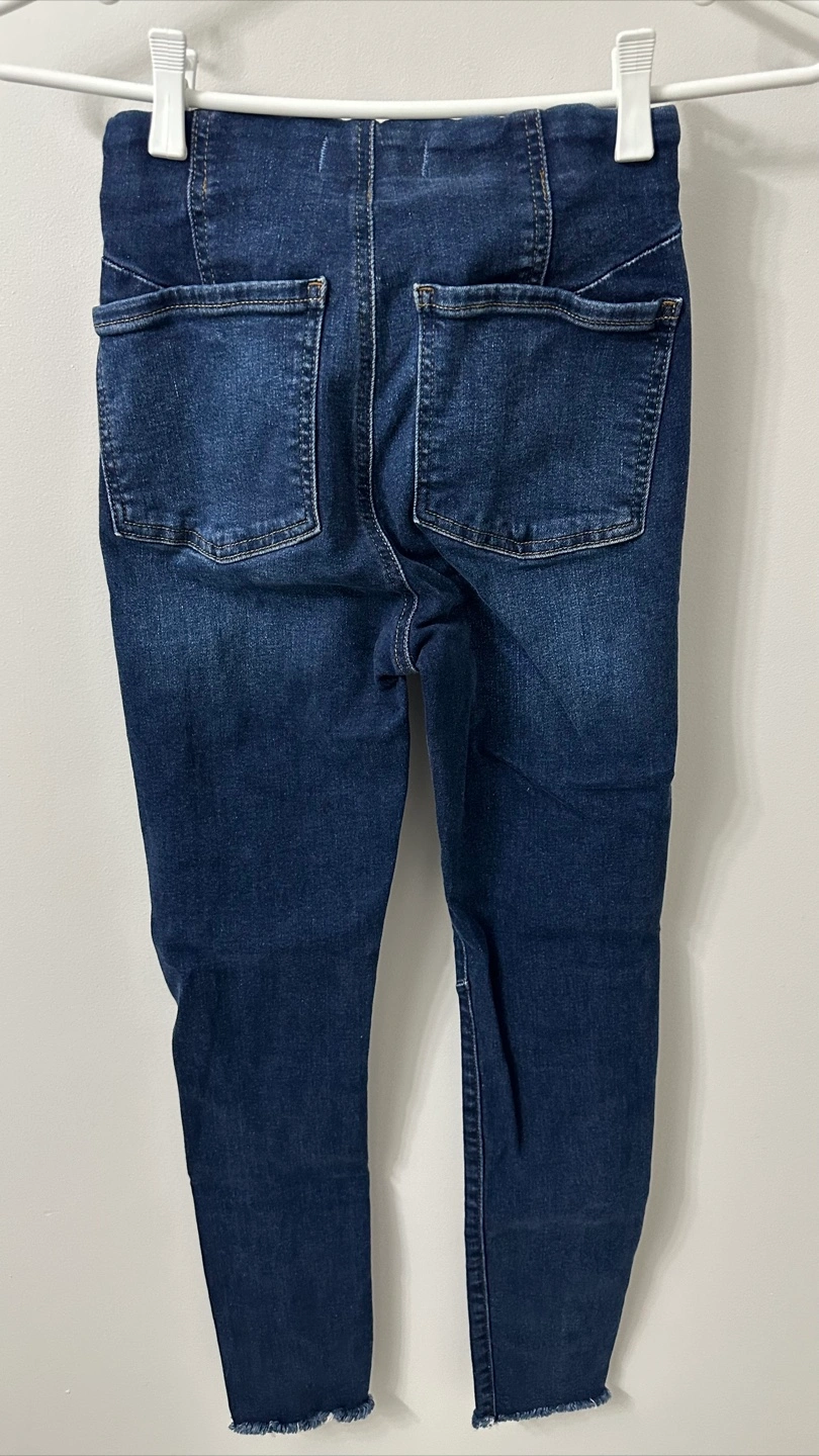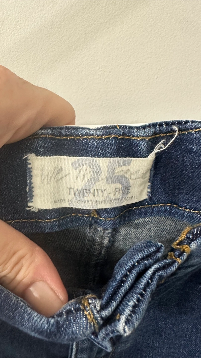 Selling a pair of We The Free (Free People) jeans in a dark wash denim. They're a size 25 and have a stylish, high-waisted fit. Perfect for adding a bit of edge to your wardrobe!