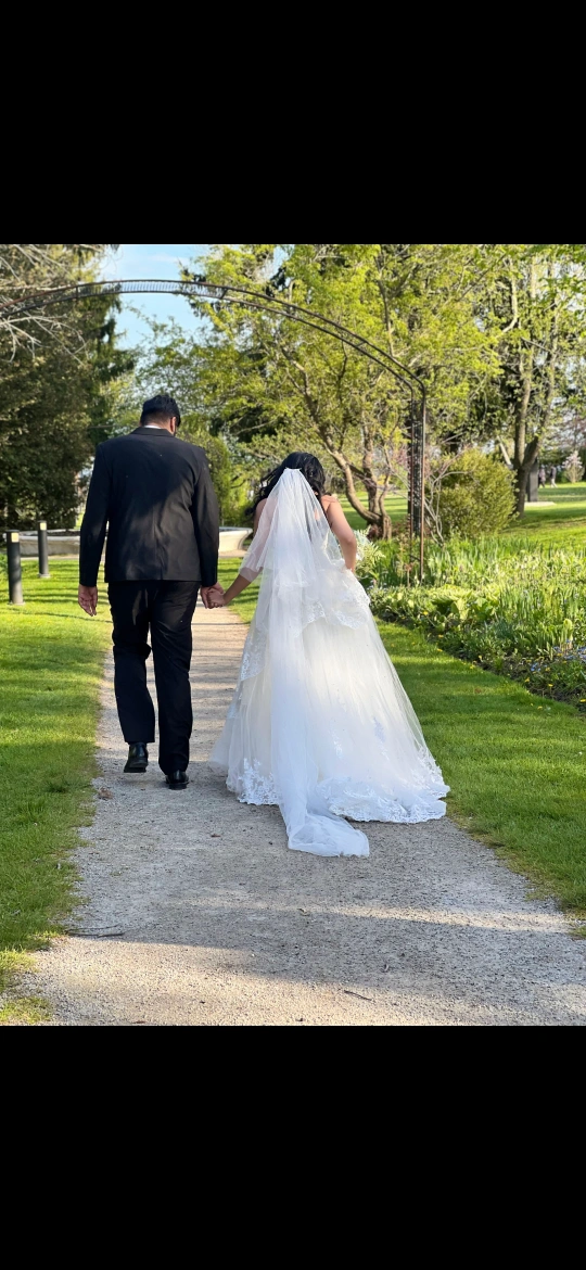 wedding gown. wore it for once. can be used on pre wed shoots, or reception. its not 5$. dm for price and details. moreover, veil is also included.