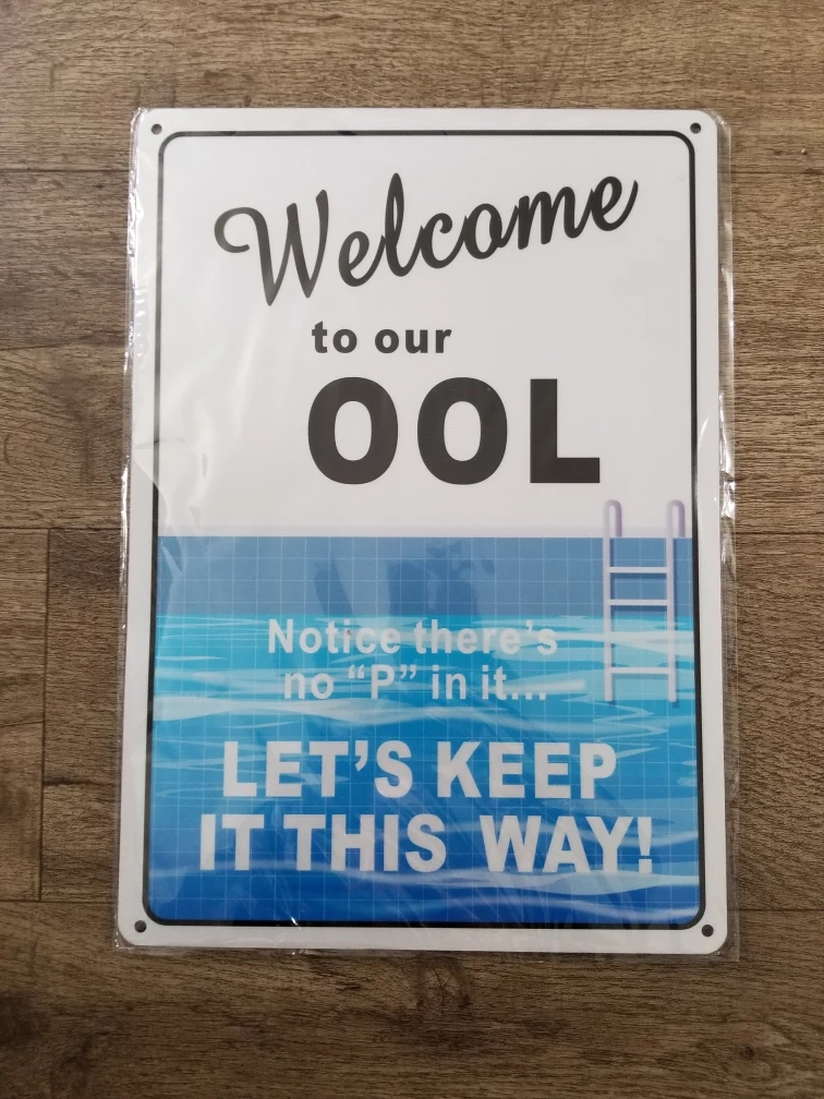 Welcome to our OOL sign! It's a fun sign that says, "Notice there's no 'P' in it... LET'S KEEP IT THIS WAY!" Brand new 9.5x 13.5