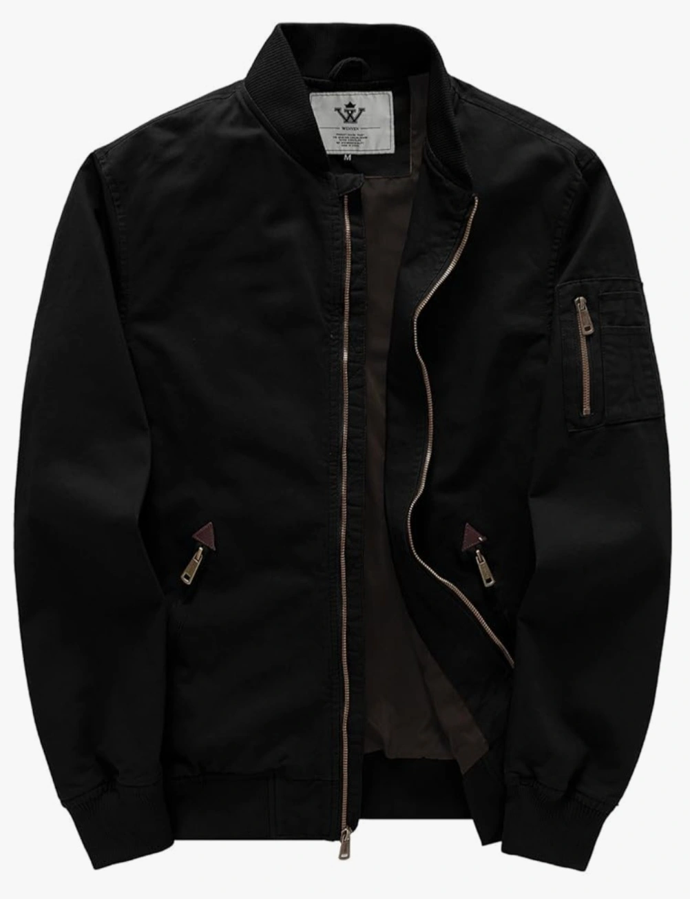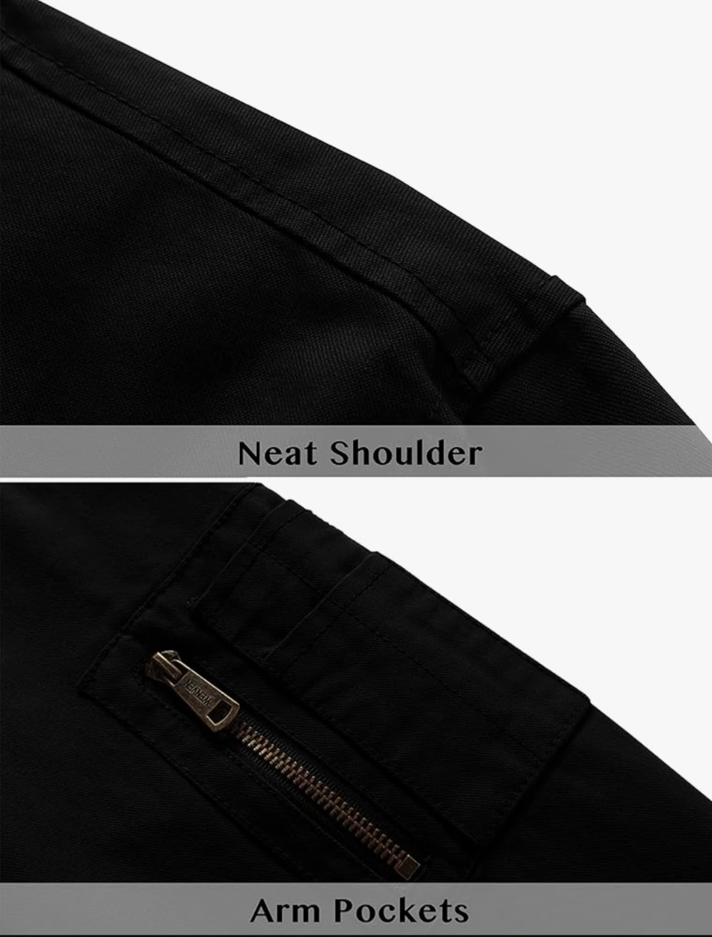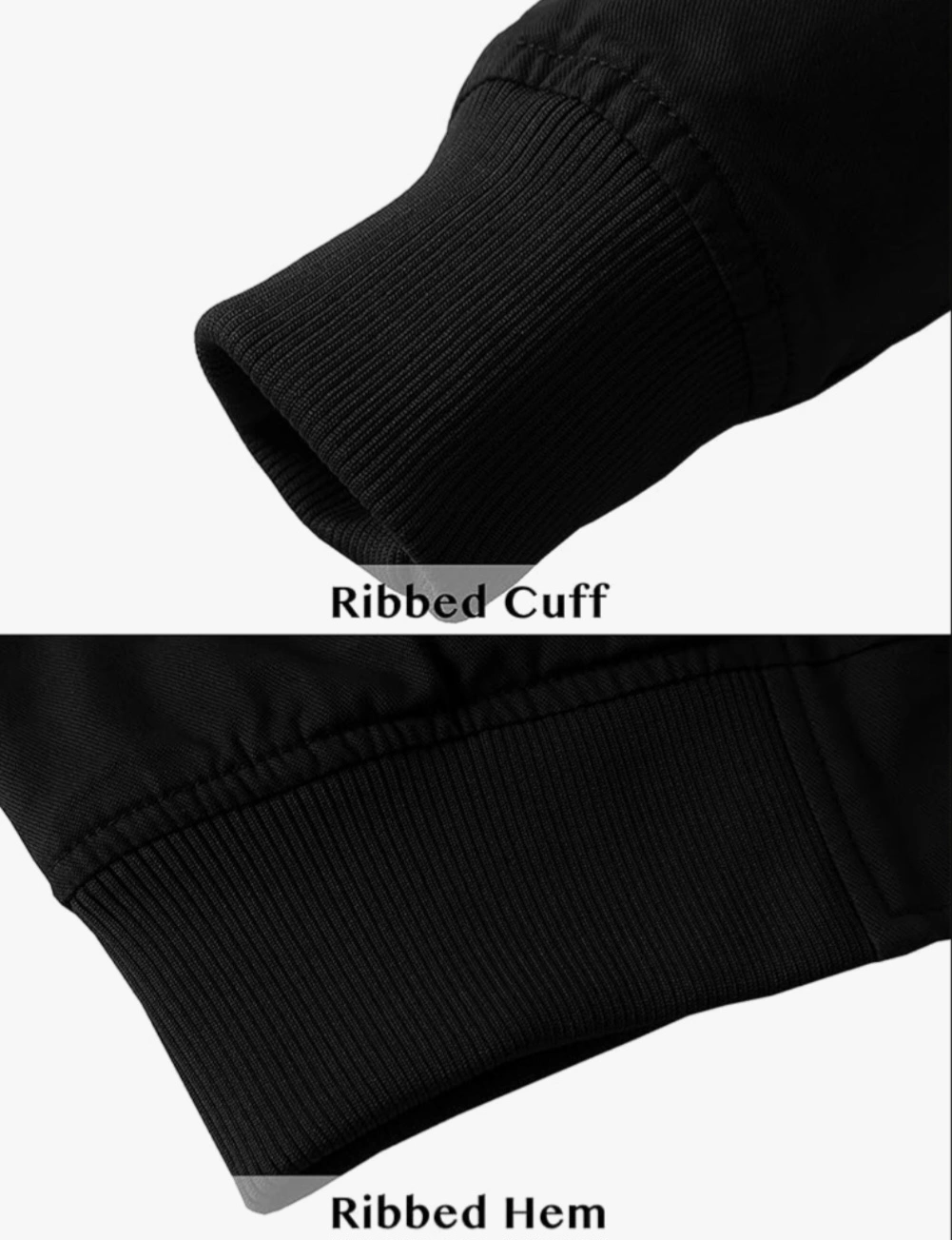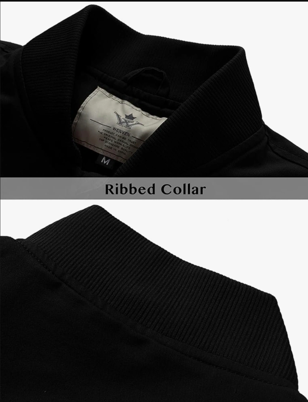 Selling a WenVen Men's Lightweight Cotton Flight Bomber Jacket casual military jacket in black. It features a ribbed collar, hem, and cuffs. Great for everyday wear!