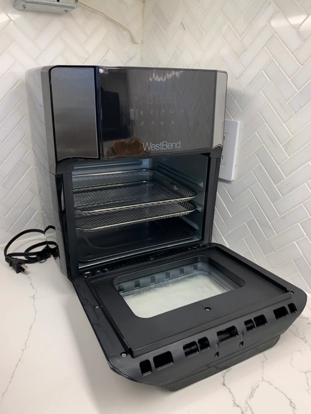 Selling a West Bend air fryer oven in great condition! It's perfect for quick and easy meals. The oven is black and comes with the included trays. It's ready to help you make delicious, crispy food right at home