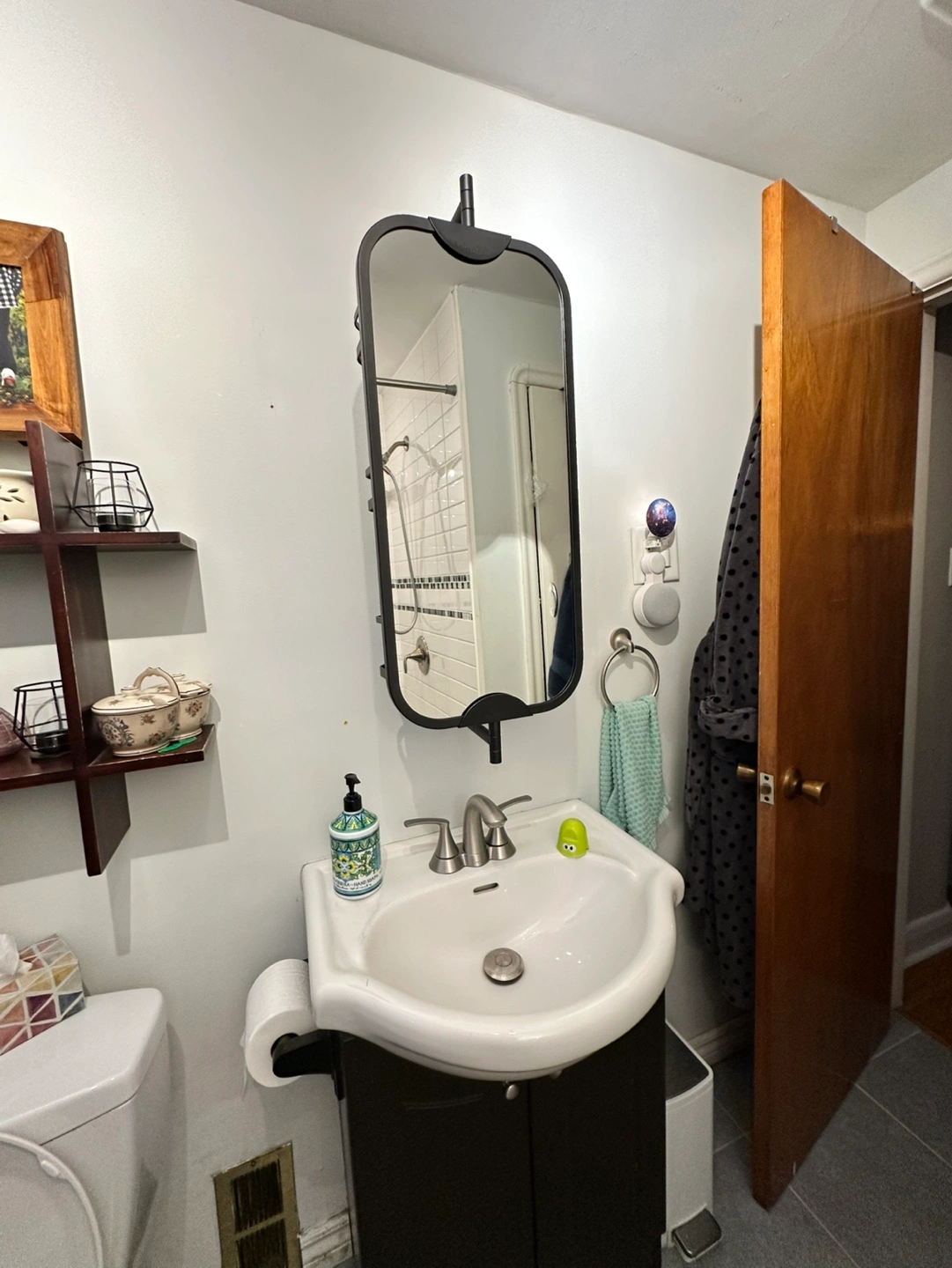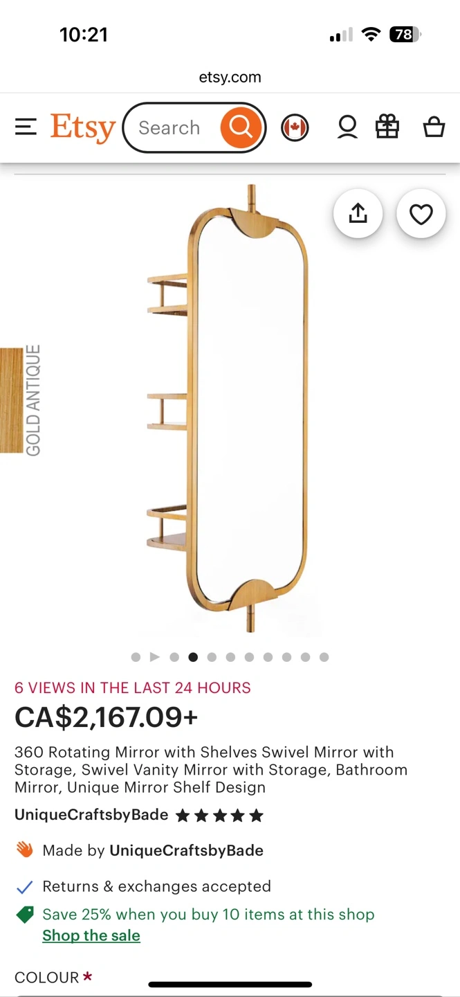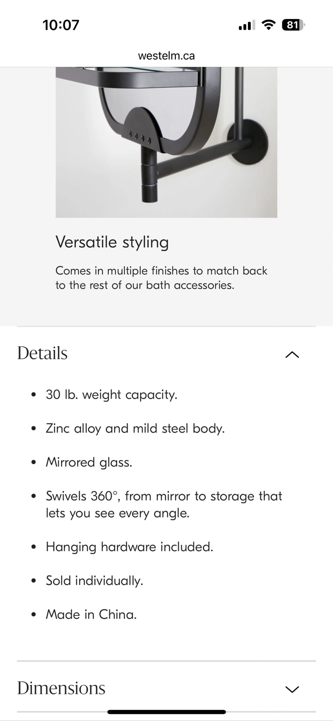360 rotating mirror. Features multiple shelves. Unique design. Bathroom mirror. Matte black finish. New condition. I installed it and realized my sink is way too small! This mirror is no longer available on west elm, but is being sold for $2000 on Etsy My mistake can be your win!