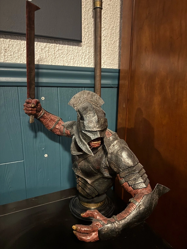 I'm selling a used WETA Workshop Lord of the Rings Uruk-Hai bust, a collectible piece for any fan. This detailed bust captures the fierce Uruk-Hai warrior. It's in good condition. Features: - Brand: WETA Workshop - Character: Uruk-Hai - Franchise: Lord of the Rings - Type: Bust Looking at similar listings on Kijiji, these busts typically range from $200 to $400 CAD depending on condition and rarity. Given its condition, I'm asking $190. If the ad is up, it's still available!